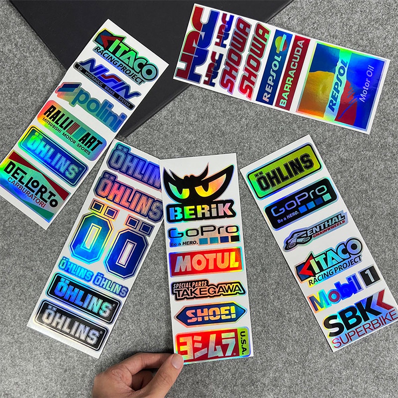 Motorcycle Laser Sticker Set Holographic Helmet Decal Side Strip Fender Body Bike Stickers Car Decal Waterproof