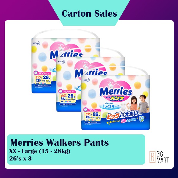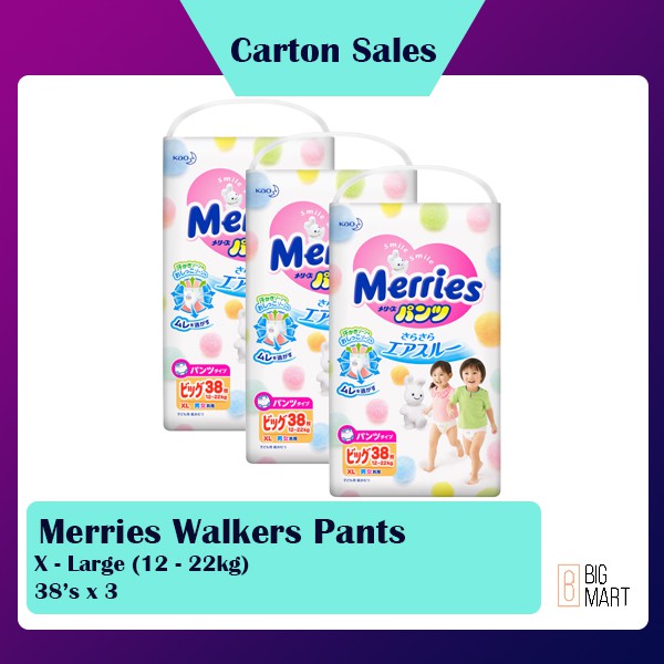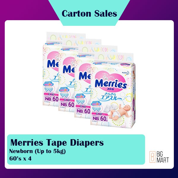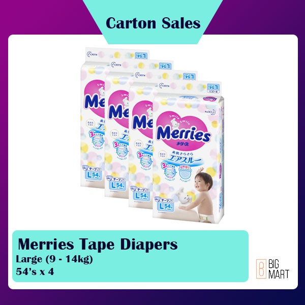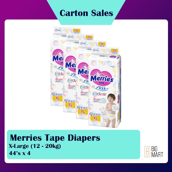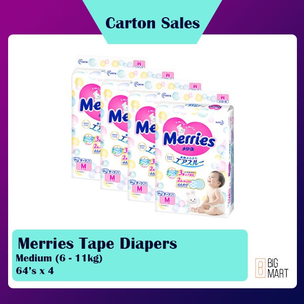 MERRIES Disposable Diapers - Tape & Pants [1 Carton - 3 / 4 Pack]