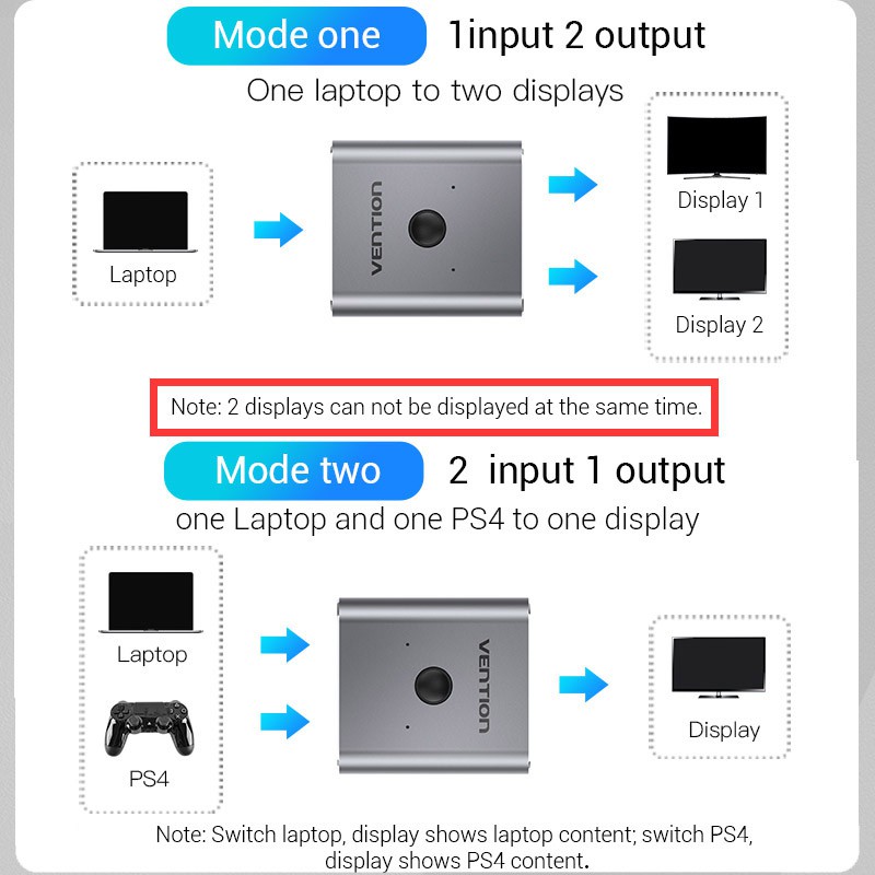 Vention 1 in 2 out / 2 in 1 out HDMI Splitter