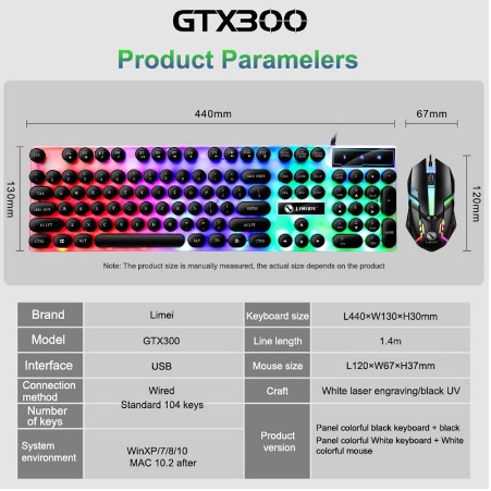 SG Local GTX300 LED Gaming Keyboard and Mouse Set Mechanical Keyboard with 7 Colour Illuminated Light for Gaming Office