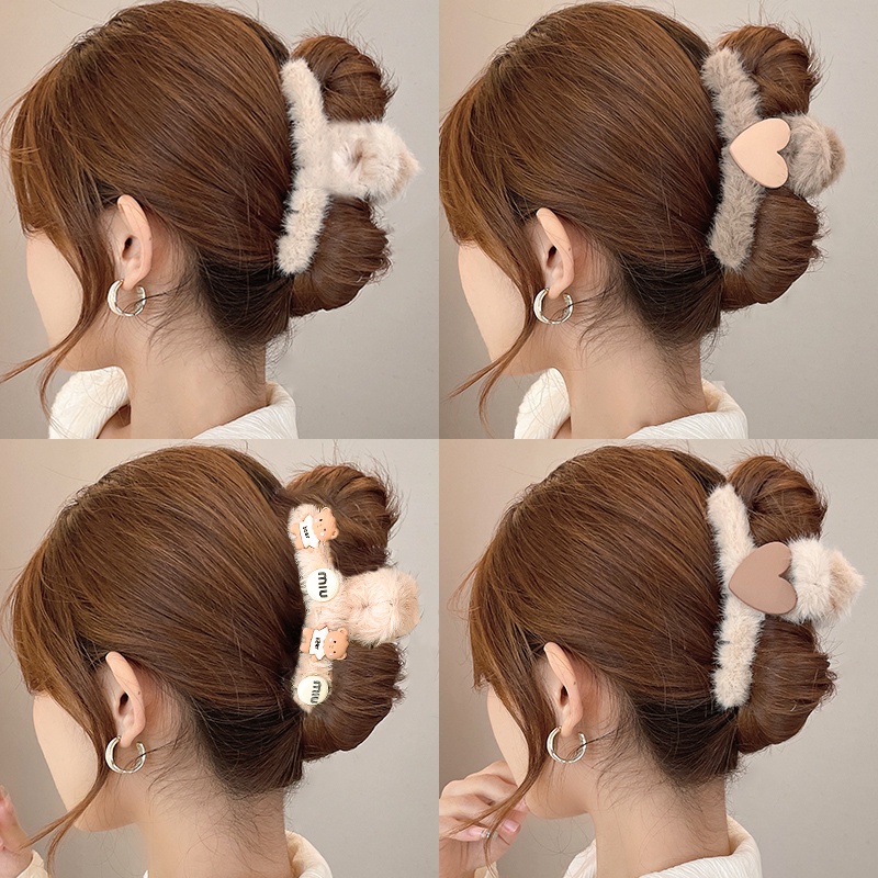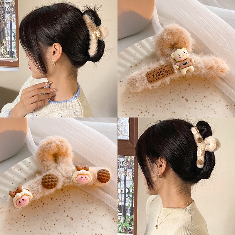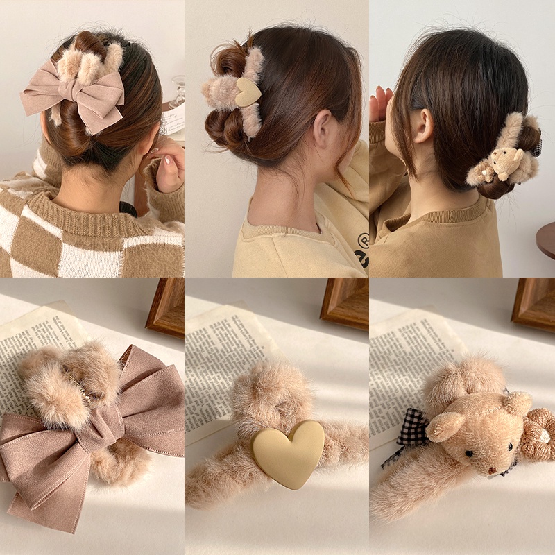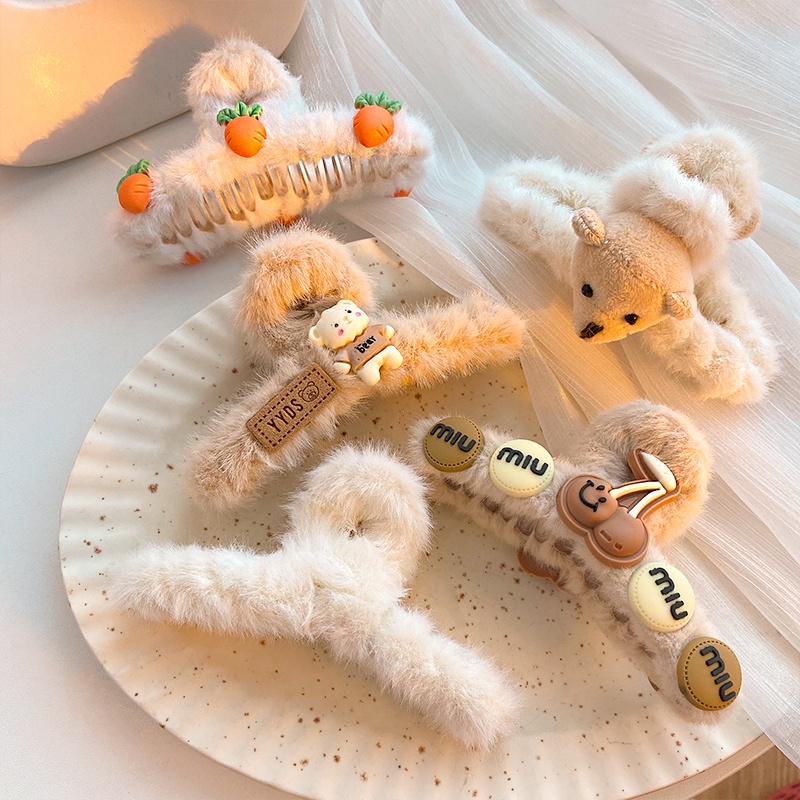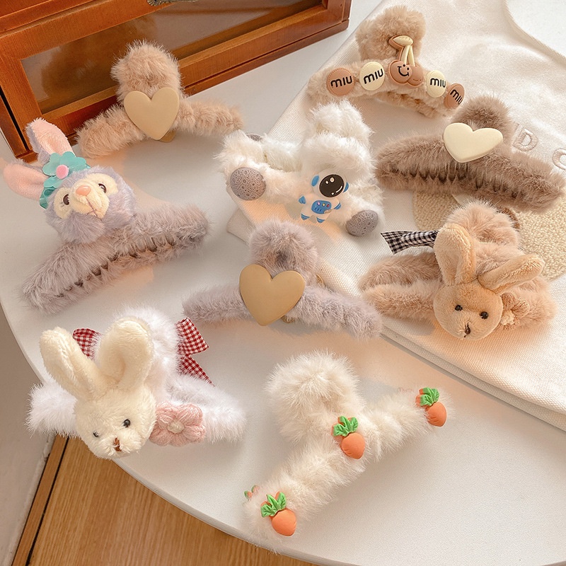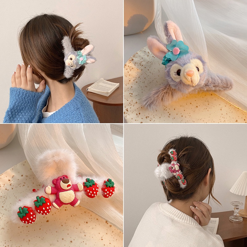 ? Name:Cute Bear Strawberry Plush Hair Claw Clip Rabbit Astronauts Heart Bow Hairpin for Women Hair Accessories