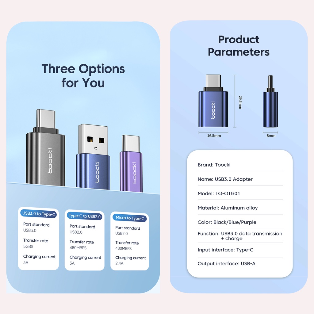 USB 3.0 Adapter USB A to Type C OTG Adapter C to Micro/USB A Converter for Samsung Xiaomi