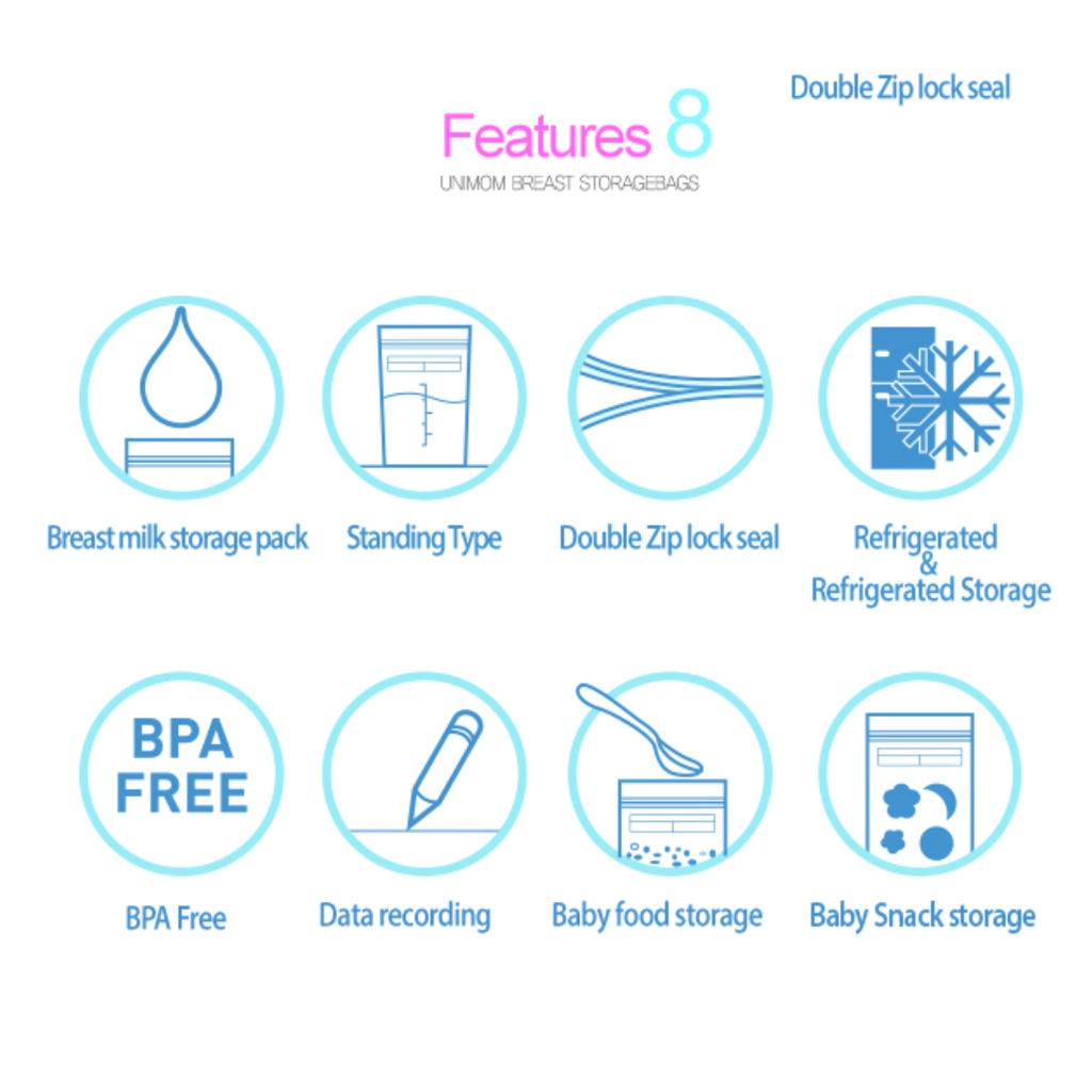 [SG Seller] Korean Unimom Breast milk storage bag 30pcs 50pcs 120pc | Big Size |with Thermal Sensor