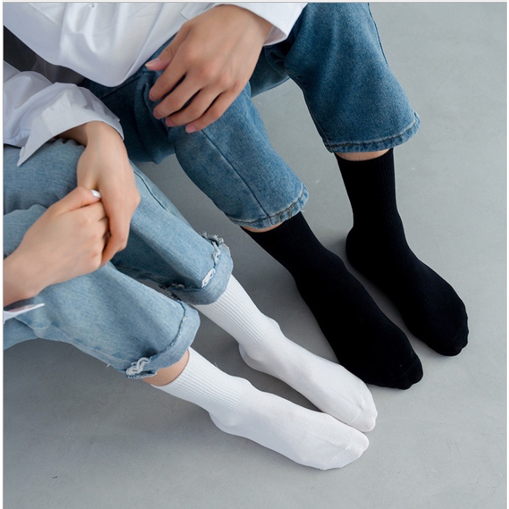 Unisex White Cotton Casual Socks Men's Long Sports Socks Cotton Plain Black/white For Boys For Students 1 Pair Socks