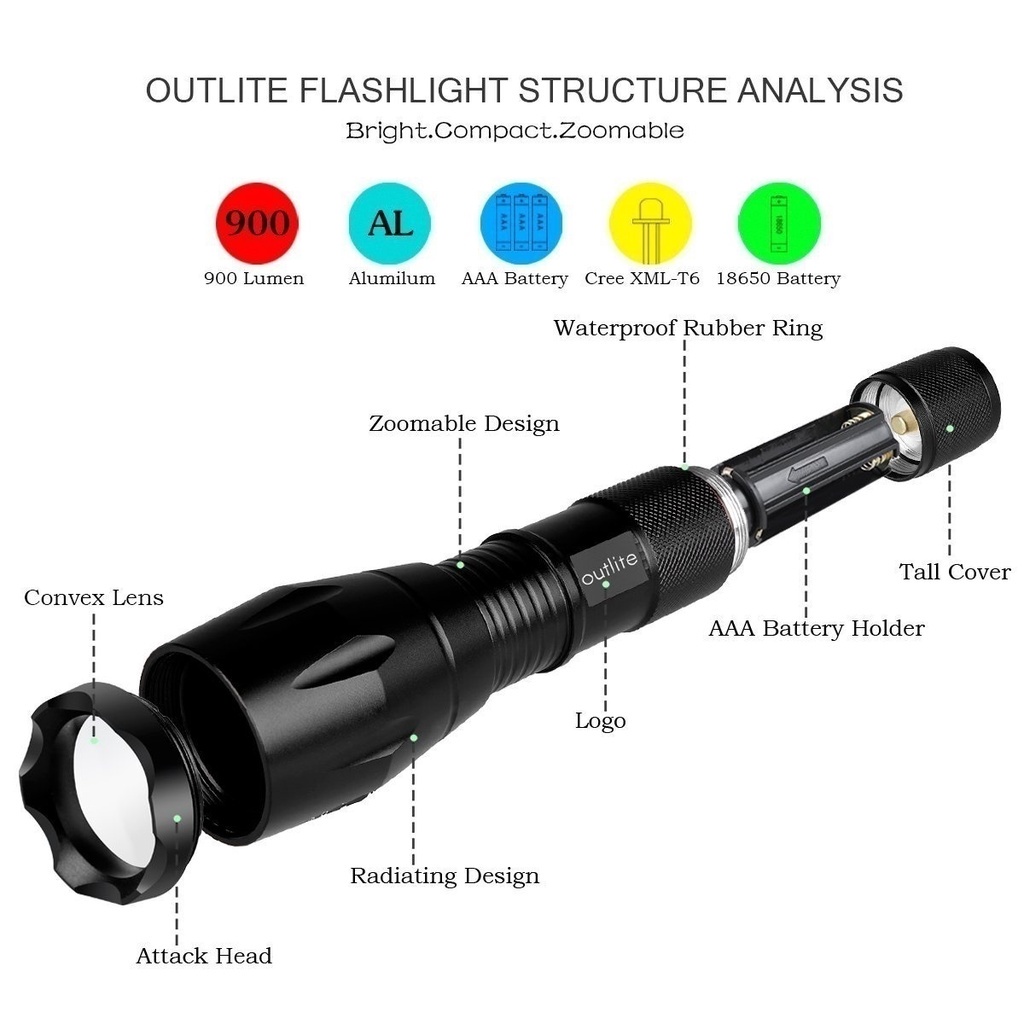 Newest CREE T6 5 Mode LED Flashlight With Zoom Waterproof Camping Hunting