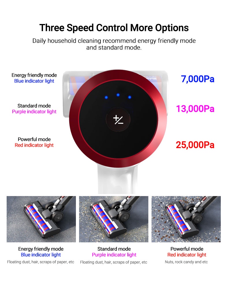 - Large capacity dust canister design with many accessories available can meet different needs.