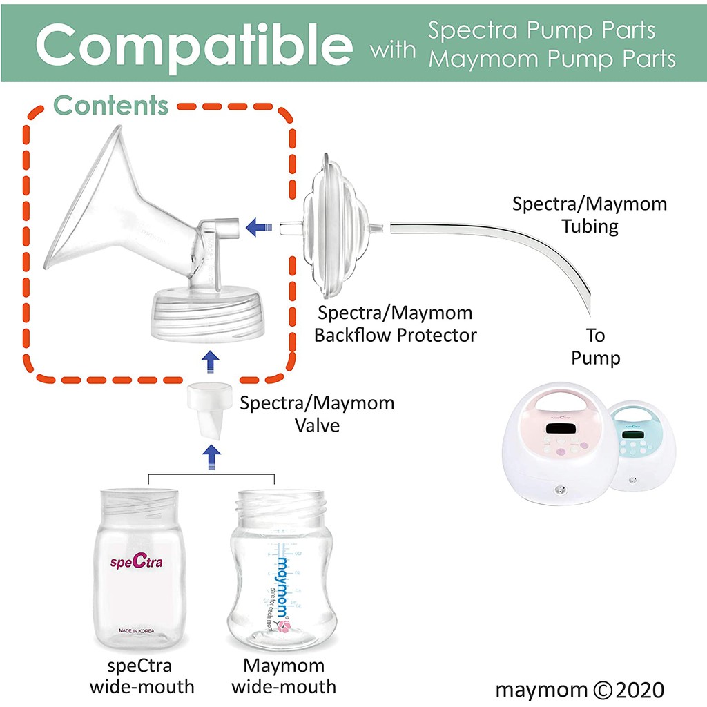 Maymom Accessories are compatible with Spectra and other breastpumps (need to connect thru backflow protectors).