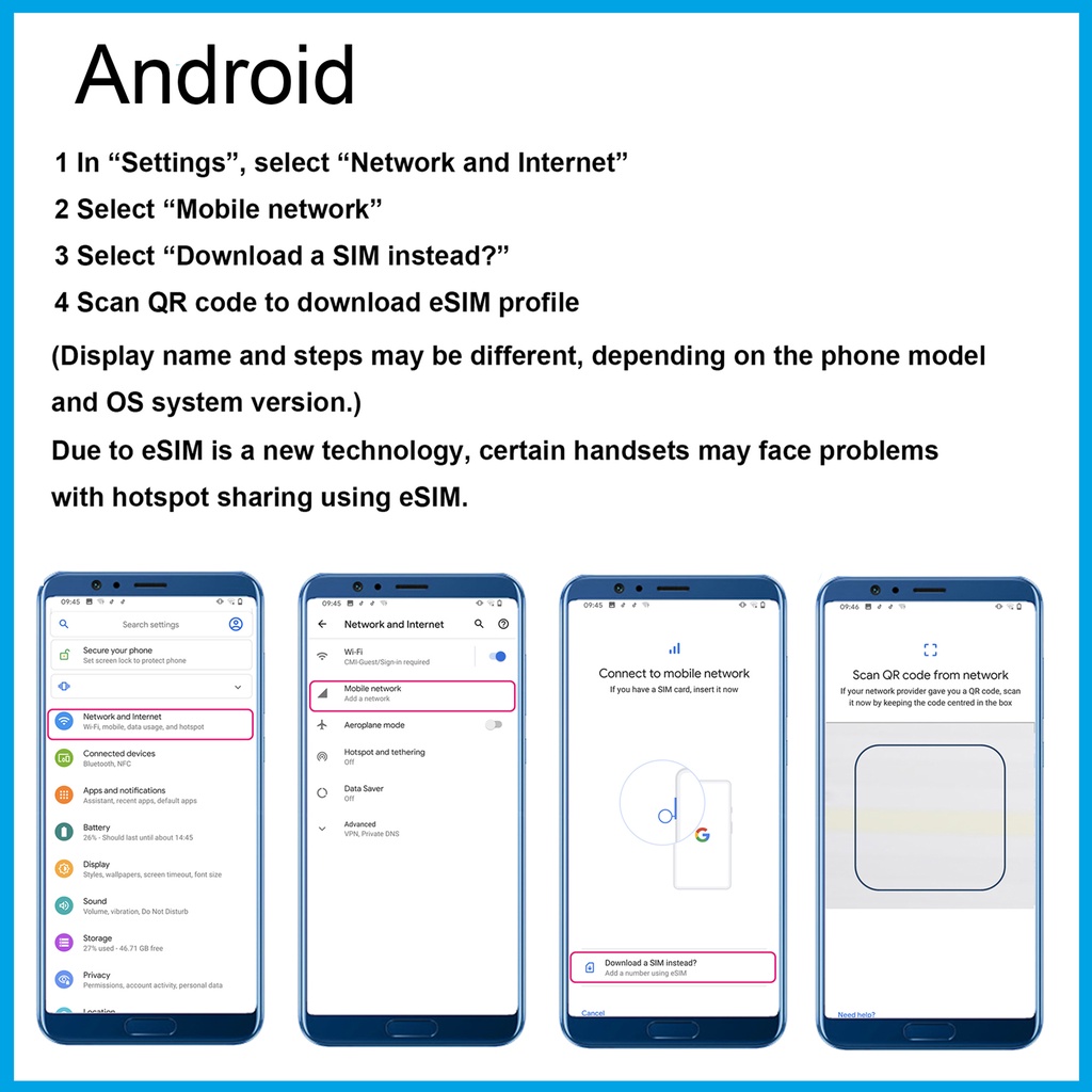 Please make sure your phone support e-SIM !!!