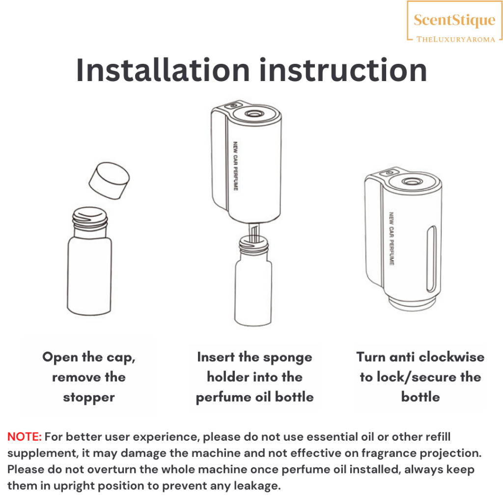 Note: For better user experience, please do not use essential oil or other refill supplement, it may damage the machine and not effective on fragrance projection.