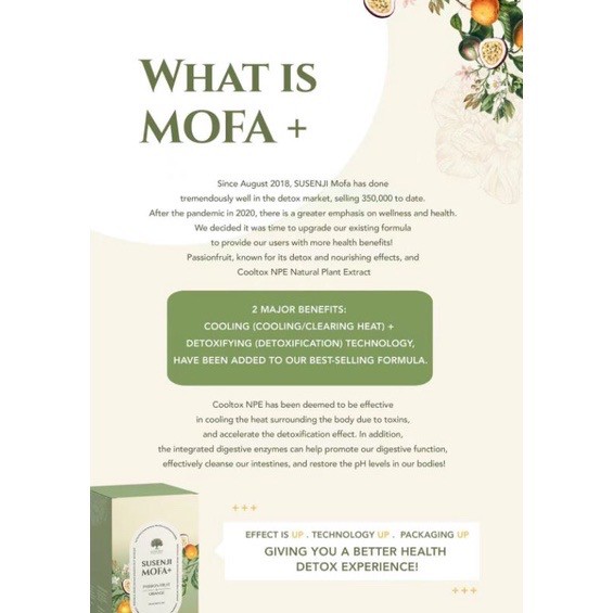 加之,Mofa Plus不含泻药、西药或其它化学成分,所含有的橙粉、百香果粉、洋车前仔壳、益生元、Cooltox、苹果纤维、综合消化酶等都是天然的植物成份,重点,各成份经研发配置打造黄金比例的安全配方,所以长期饮用Mofa Plus都不会造成依赖,也没有对产品'免疫了'之说。