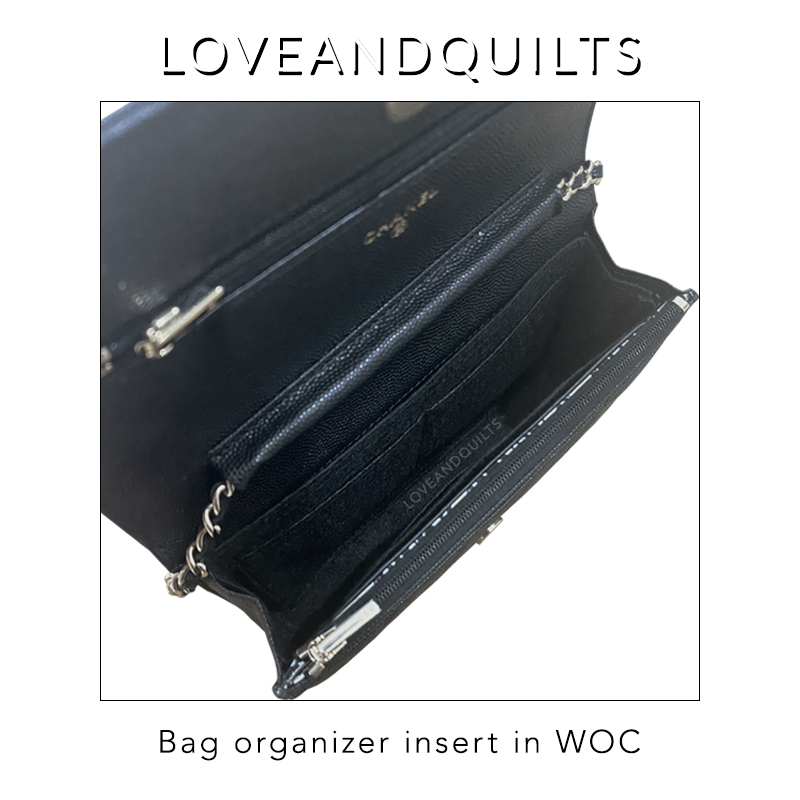 The bag organizer insert is specially designed for Chanel Wallet on Chain (WOC). It has gone through many rounds of trials to achieve the most ideal fit for the bag. This insert helps to protect your bag interior from dirt, dust and damage, keeps your belongings organized, maintains the structure of your bag, and increases the amount of space within your WOC. With this, it essentially contributes a longer life to your bag.