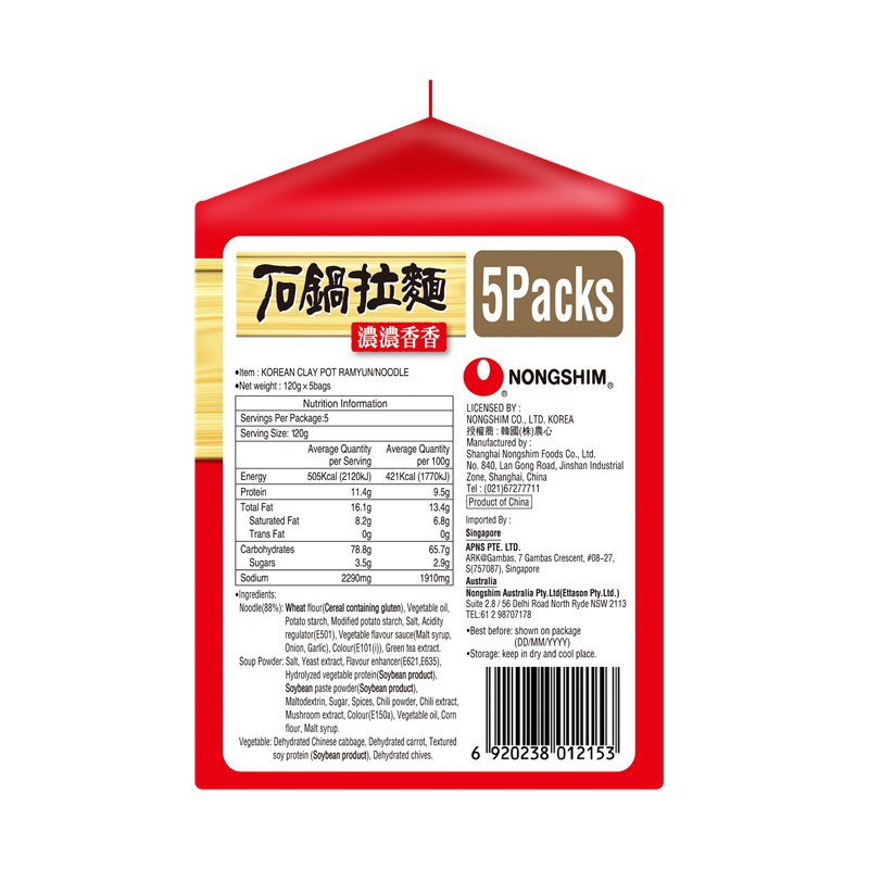 Nongshim Korean Claypot Ramyun - 5S Bag X 120G [Korean]