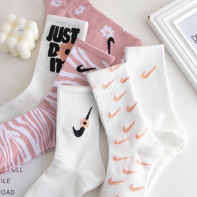All-match Sweet Cherry Blossom Pink Socks Ins Tide College Style Long Tube Sports Cotton Socks