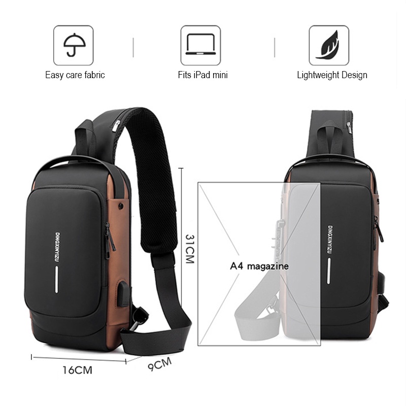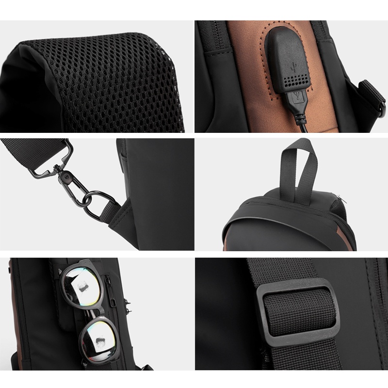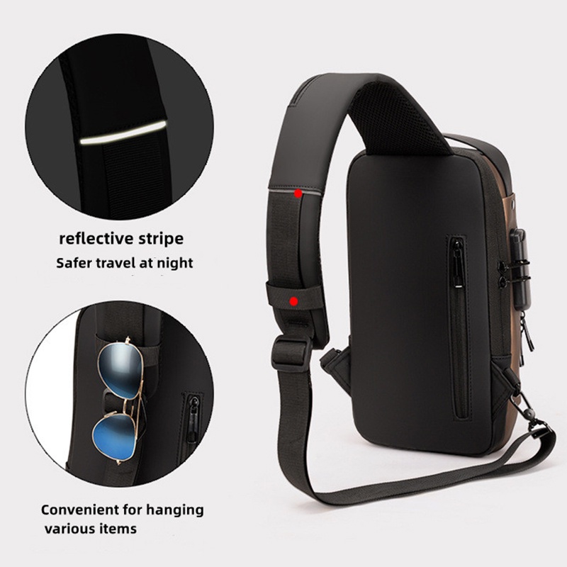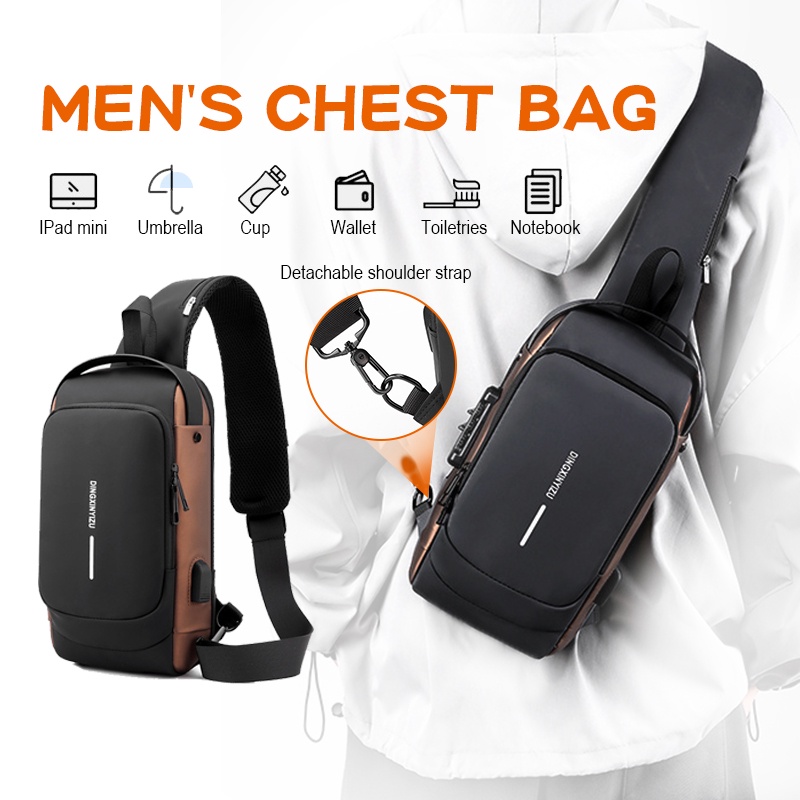 Chest Bag Men Anti-theft Men's Crossbody Bag with USB Charging Waterproof Shoulder Sports Waist Leisure Bags