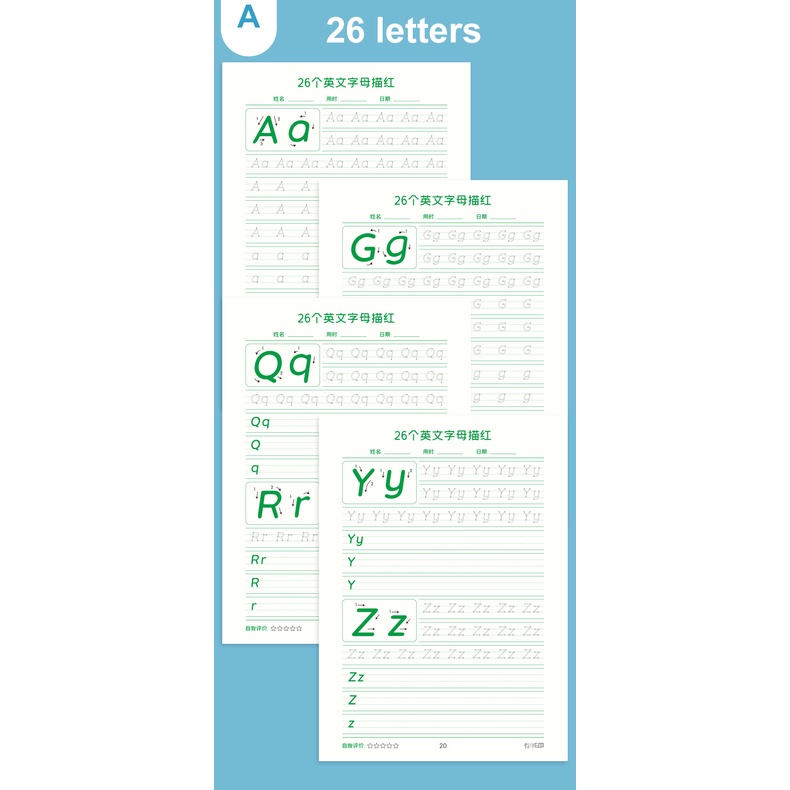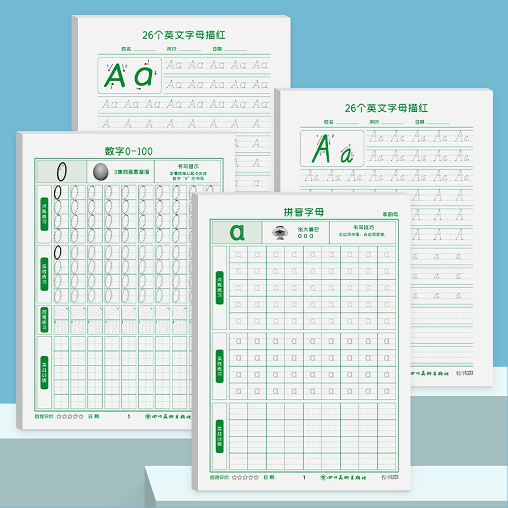 Kindergarten Preschool English Copybook Kids Toddler Learning Phonetic Alphabet Number Writing Workbook Math Exercise Book Practice Books