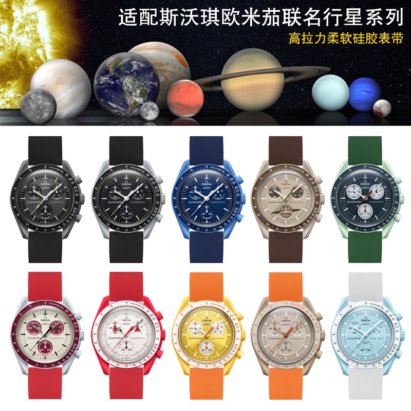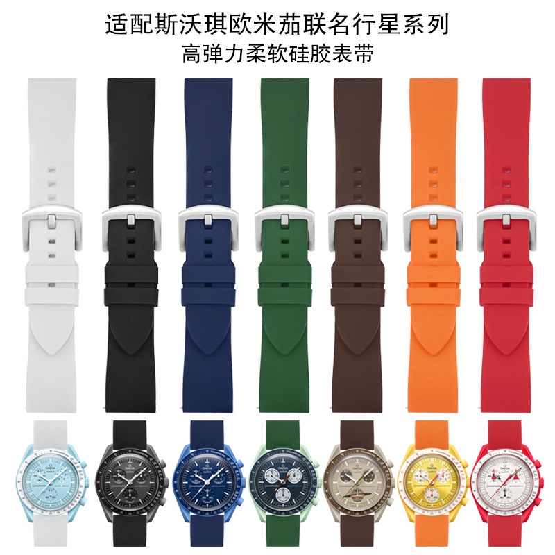 适配欧米茄斯沃琪联名款手表纯色高拉力硅胶表带