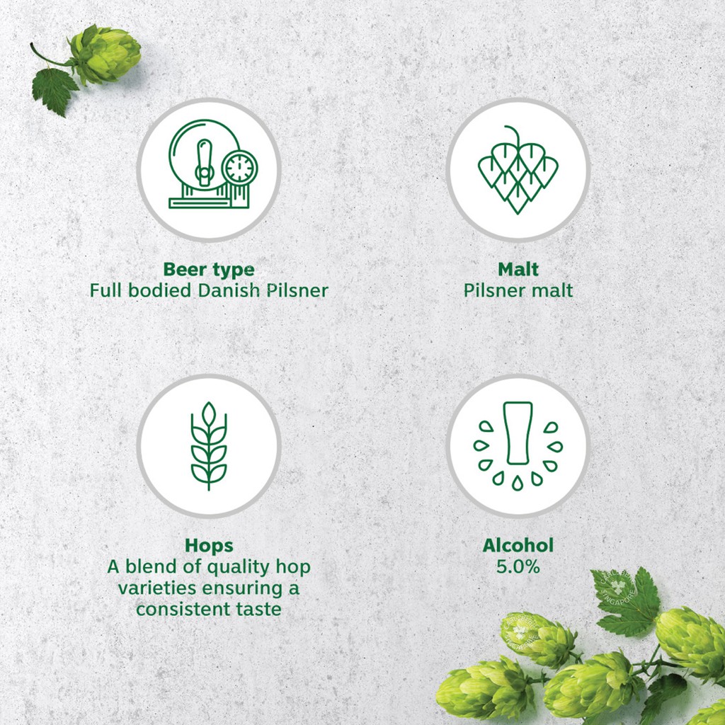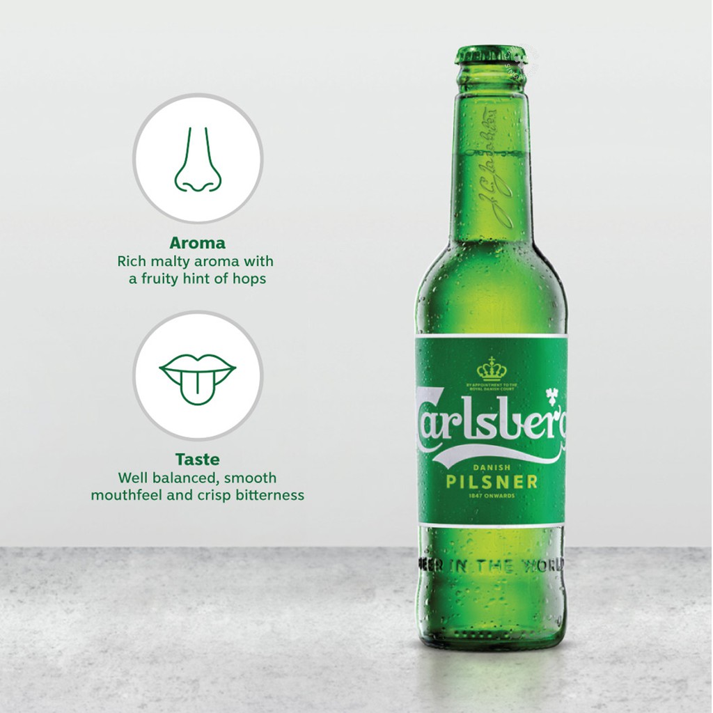 Carlsberg Danish Pilsner is everything you’d expect from the makers of probably the best beer in the world. It’s a uniquely characterful premium beer brewed using pilsner malt, a delicate blend of quality hop varieties and the 'Saccharomyces Carlsbergensis’ yeast, to ensure a consistent, well-balanced taste. It’s wonderfully crisp and refreshing, with a rich malty aroma, a fruity hint of hops and a pleasantly smooth bitterness. Skål!
