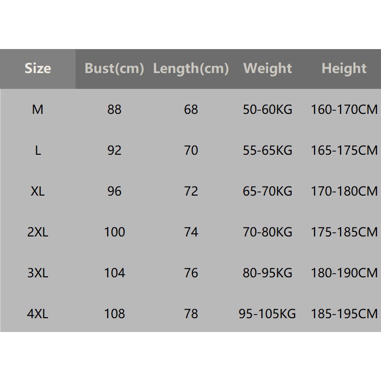 - Size available: M, L, XL, XXL, 3XL, 4XL