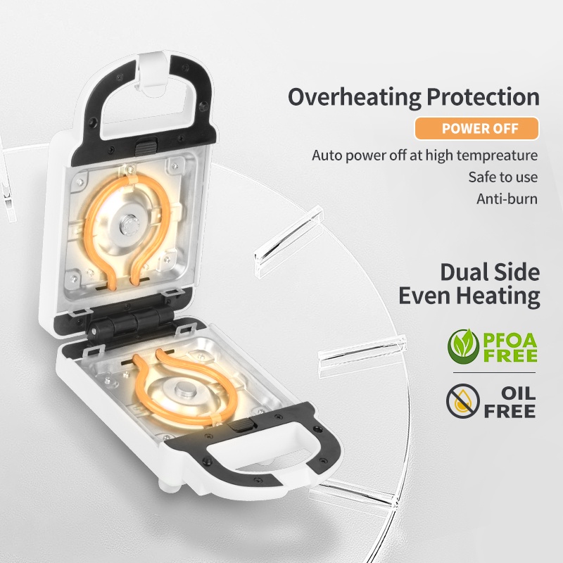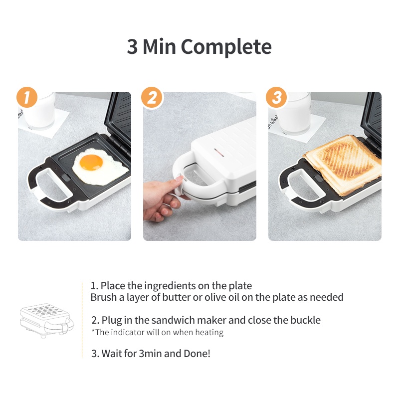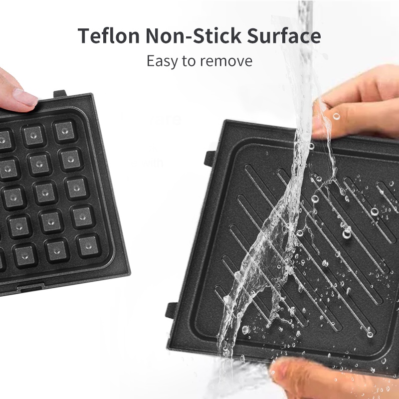 ❗ The plate can be cleaned with wet cleaning cloth or washed with dish soap. Just need to be careful that DO NOT let the water enter the gap of the sandwich maker, which may cause breakdowns.