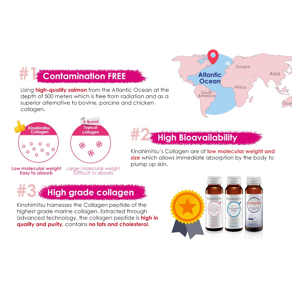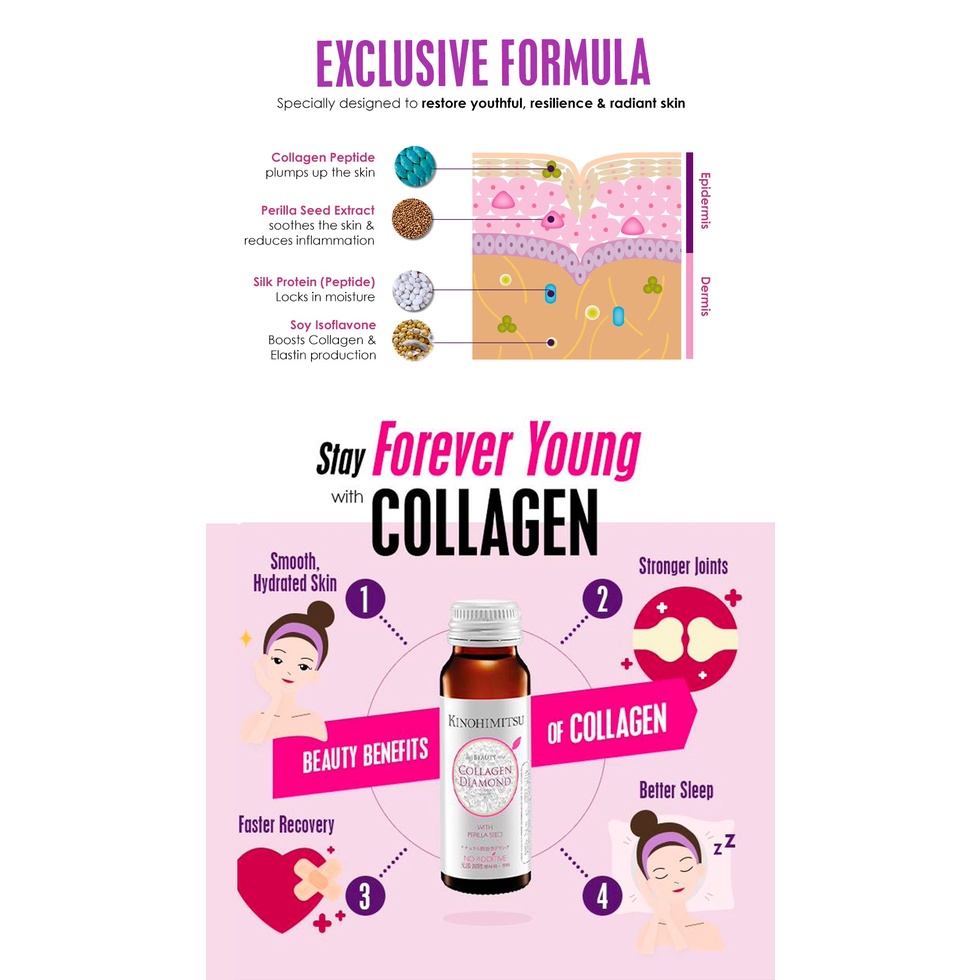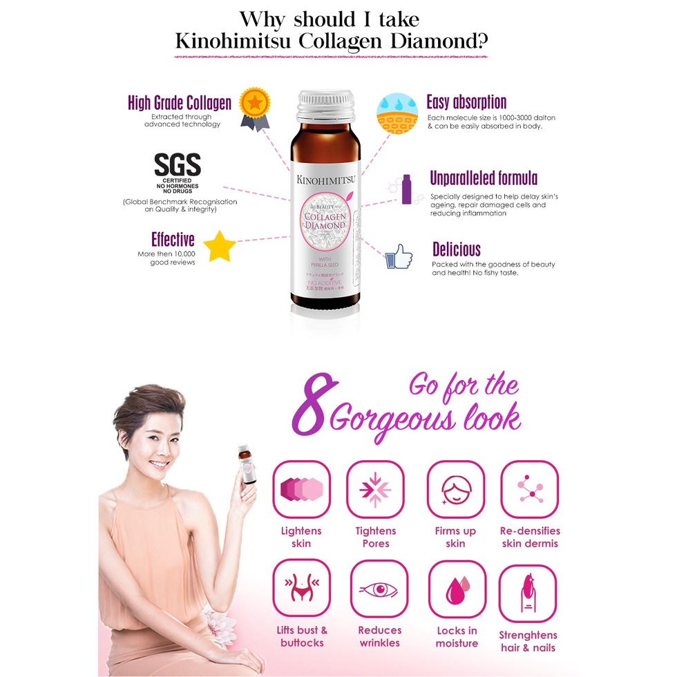 With a whopping 5300mg of Collagen Peptide, Kinohimitsu Collagen Diamond 5300 Drink is specifically catered to help restore youthfulness, resilience and radiance to mature skin.