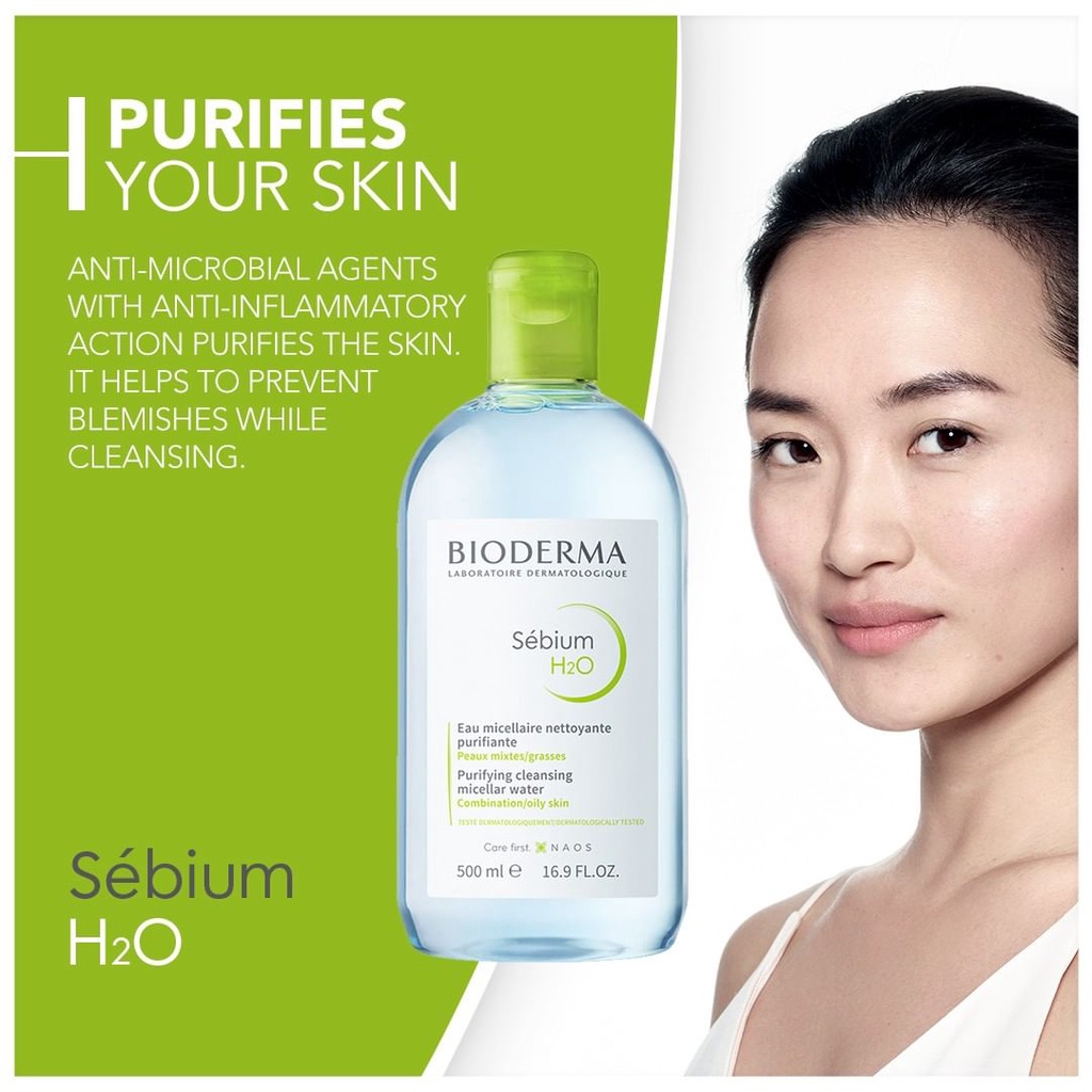 Enriched with purifying agents, zinc gluconate and copper sulphate, Sébium H2O purifies the skin and limits sebaceous secretion.