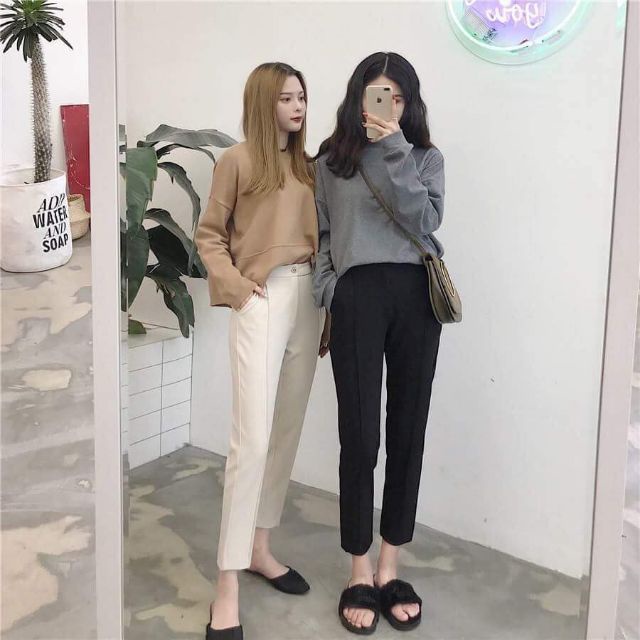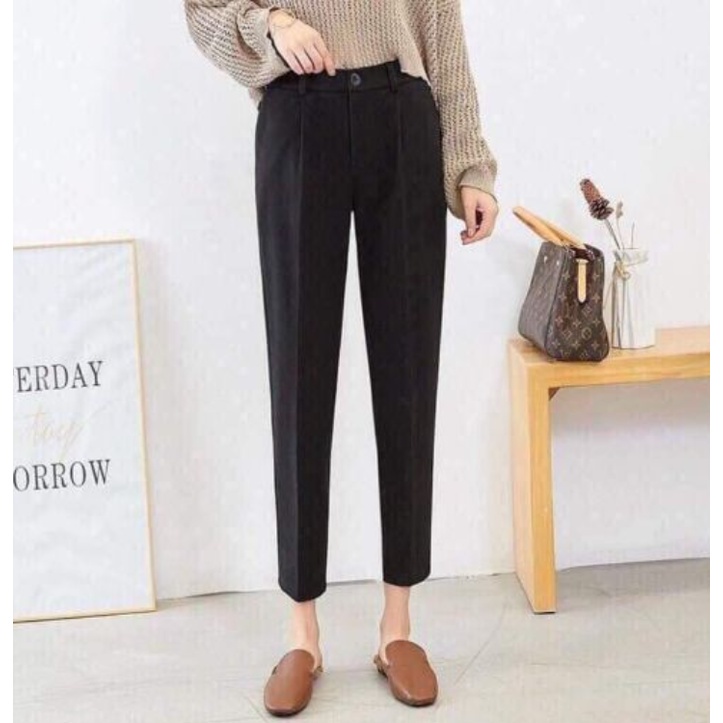 Women's elastic waist pants with middle buckle/ spandex fabric in big size/ women's office baggy pants