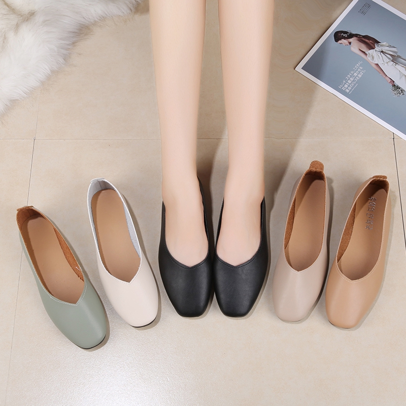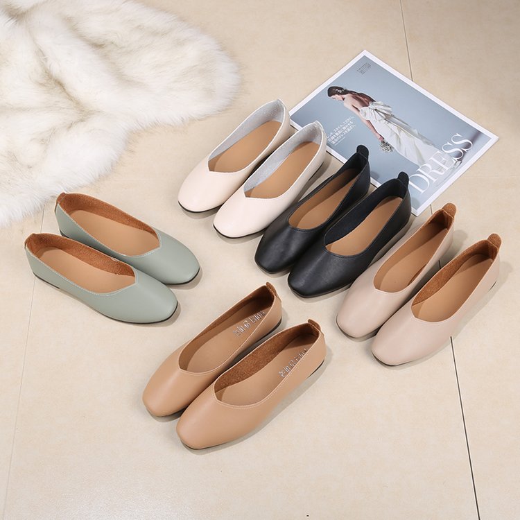 Women's Flat Shoes Ladies Square Toe Comfortable Lazy Shoes
