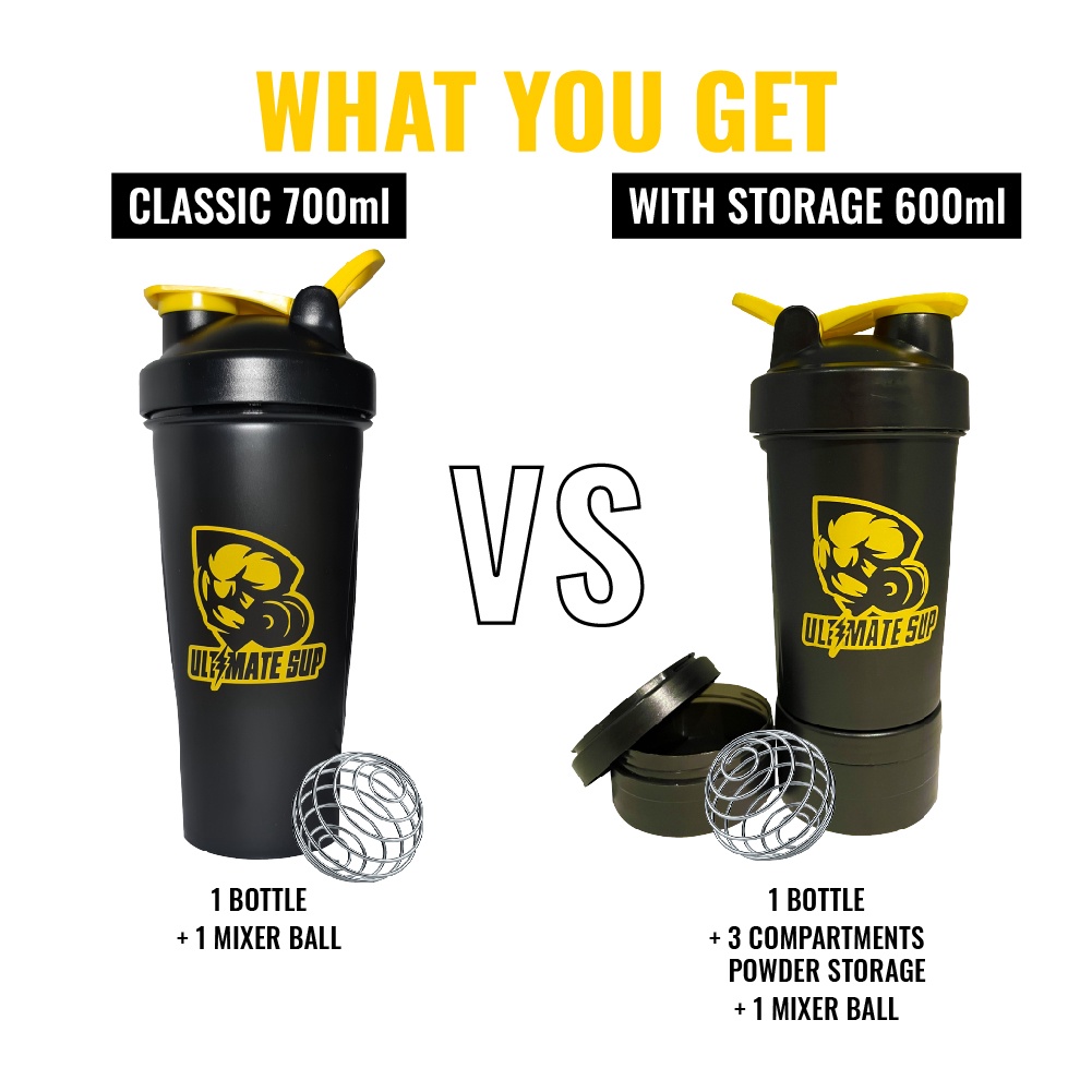❤️ What You Get:1 Bottle + 3 Compartments Powder Storage + 1 Mixer Ball