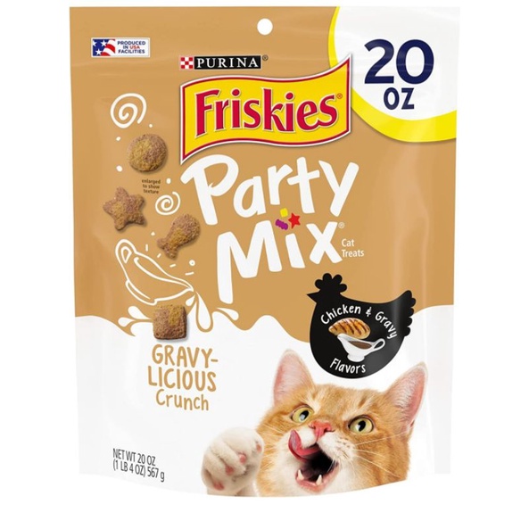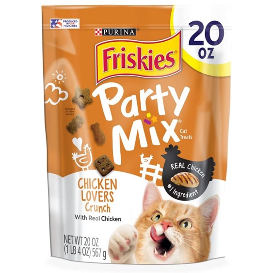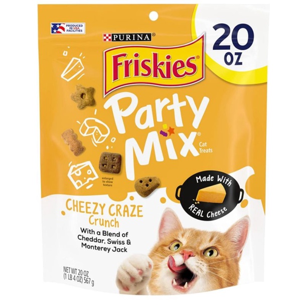 Purina Friskies Made in USA Cat Treats, Party Mix Cheezy Craze/ chicken loverCrunch - 20 oz. Canister, Cheese
