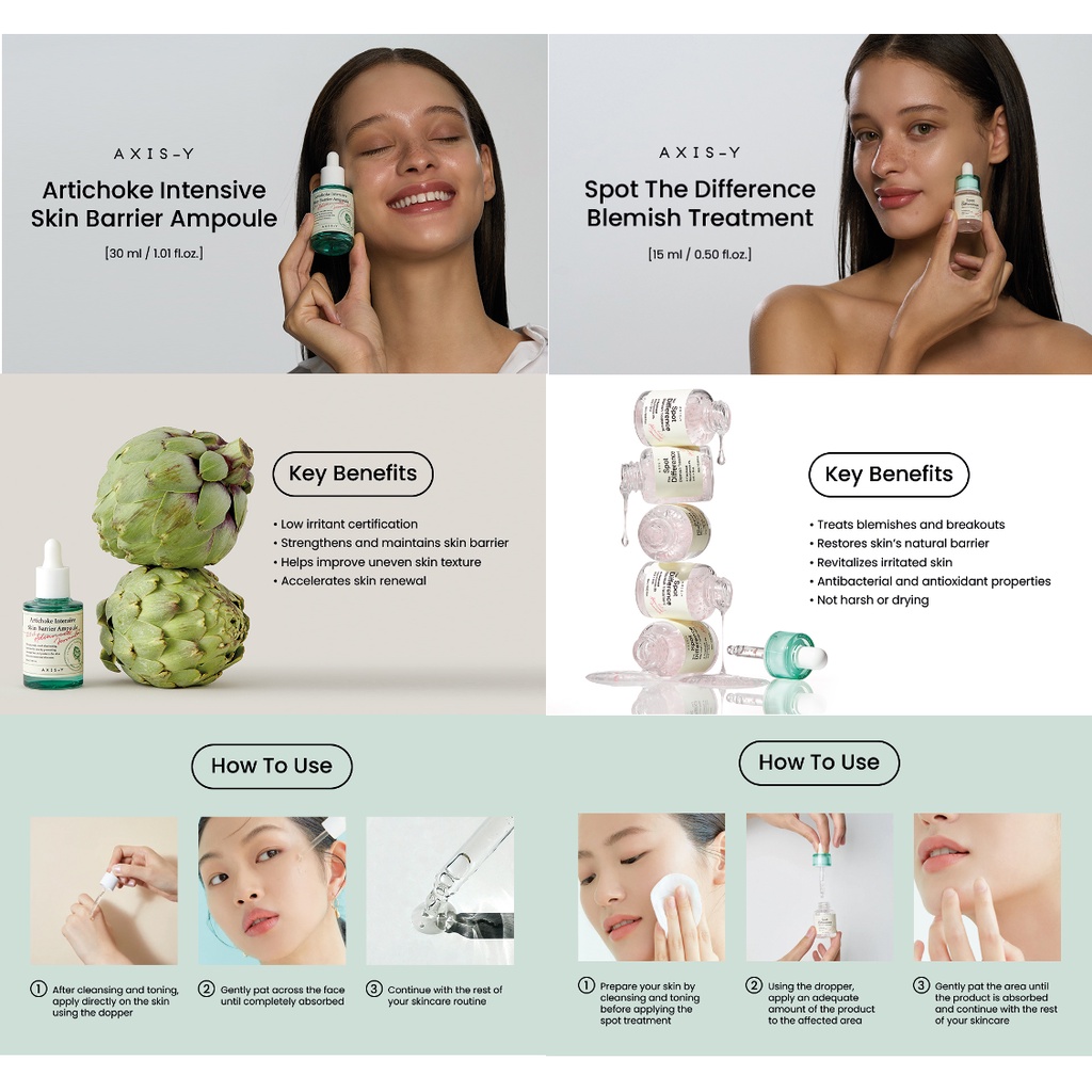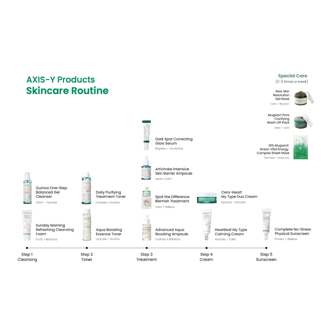 AXIS-Y Cleanser, Toner, Blemish, Dark Spot Glow Serum, Artichoke Ampoule, Sunscreen, Mugwort Pore Wash, Gel Mask