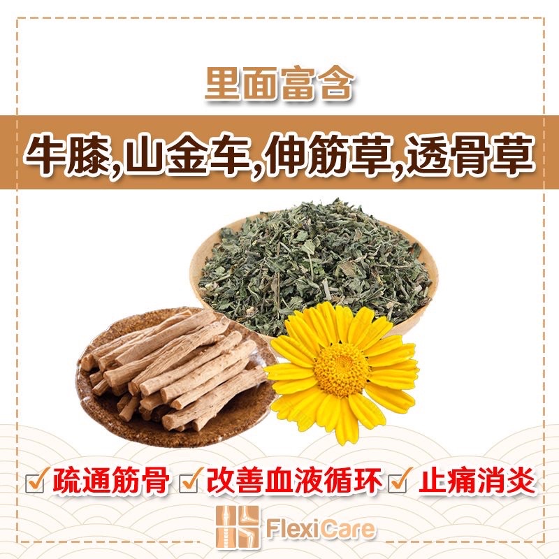 【Flexicure 筋骨膏】是采用3大天然草药制成的