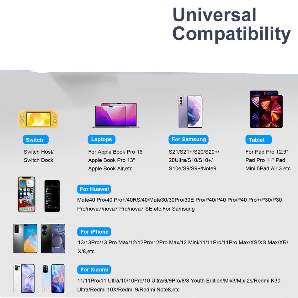 3. The charger supports charging notebooks(Apple books,Matebook,Xiaomi book) and can quickly charge mobile phones