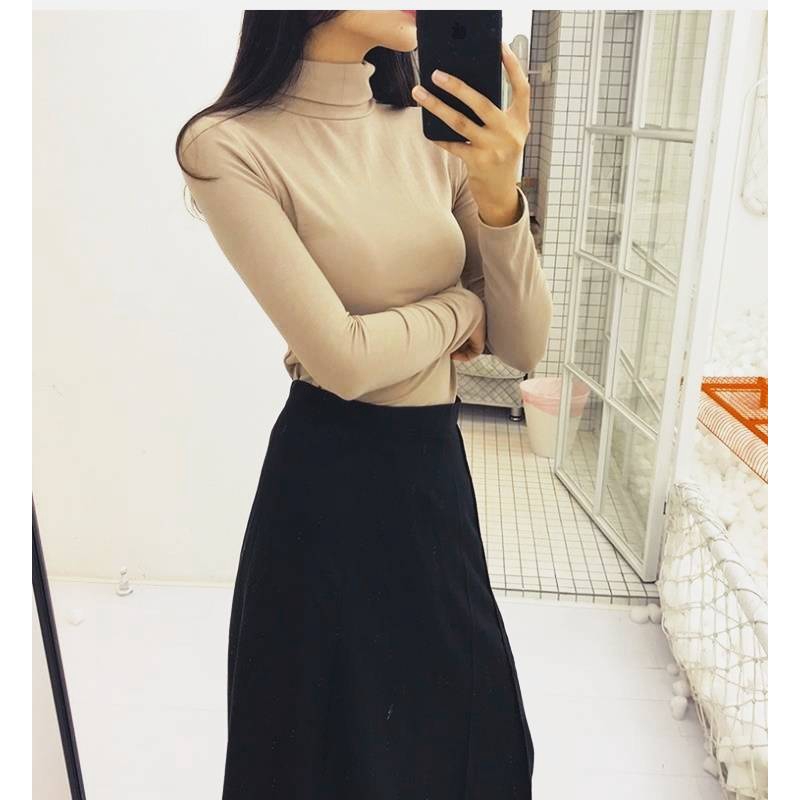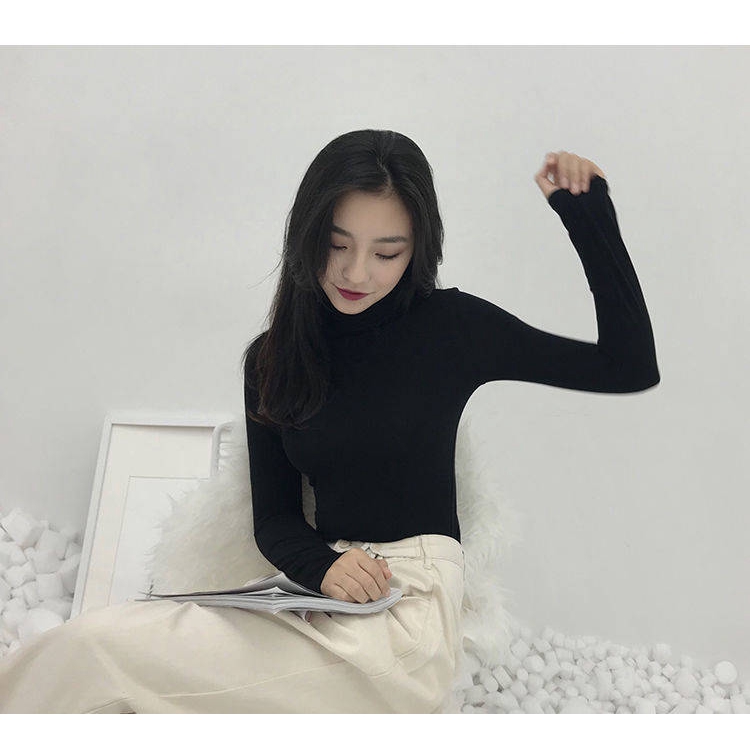 STOCK!!!Muslimah Turtleneck Inner Women Baju Blouse High Neck Long Sleeved Top Slim Office