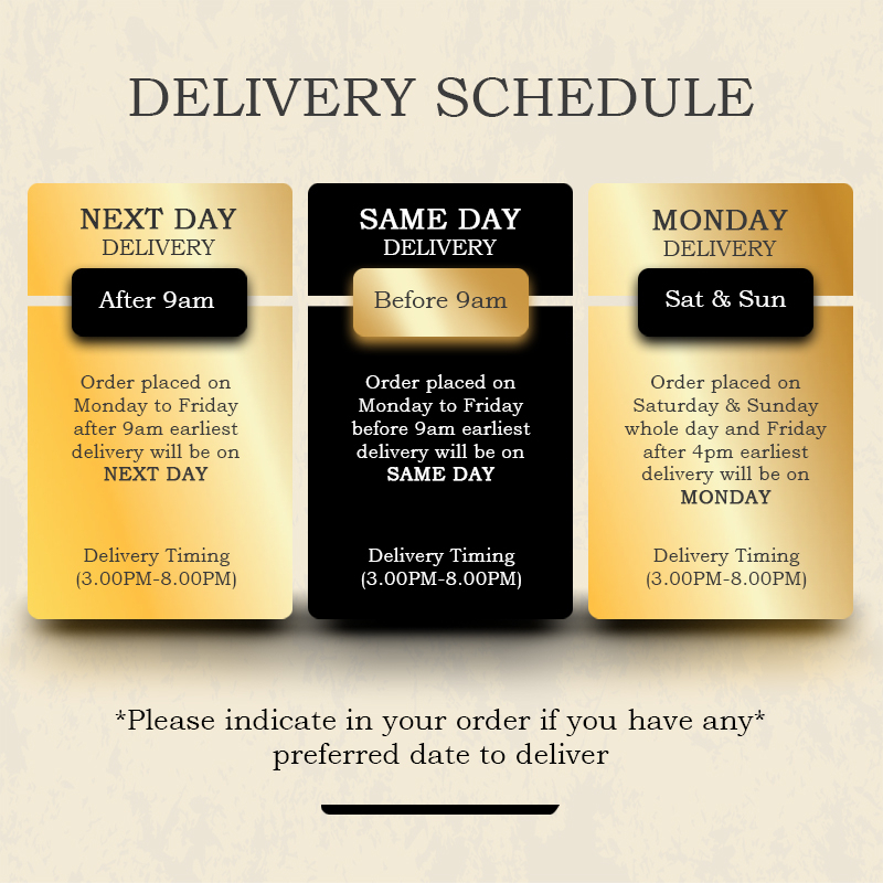 Saturday & Sunday > Whole day and Friday after 4pm (Monday Delivery 15.00-20.00)