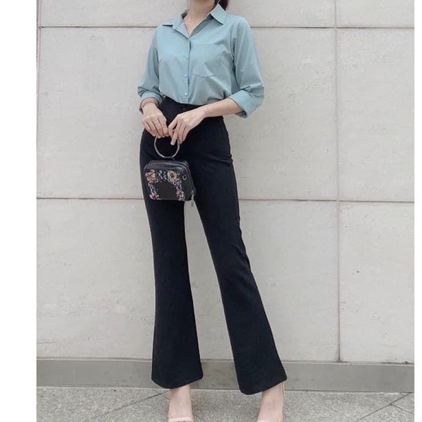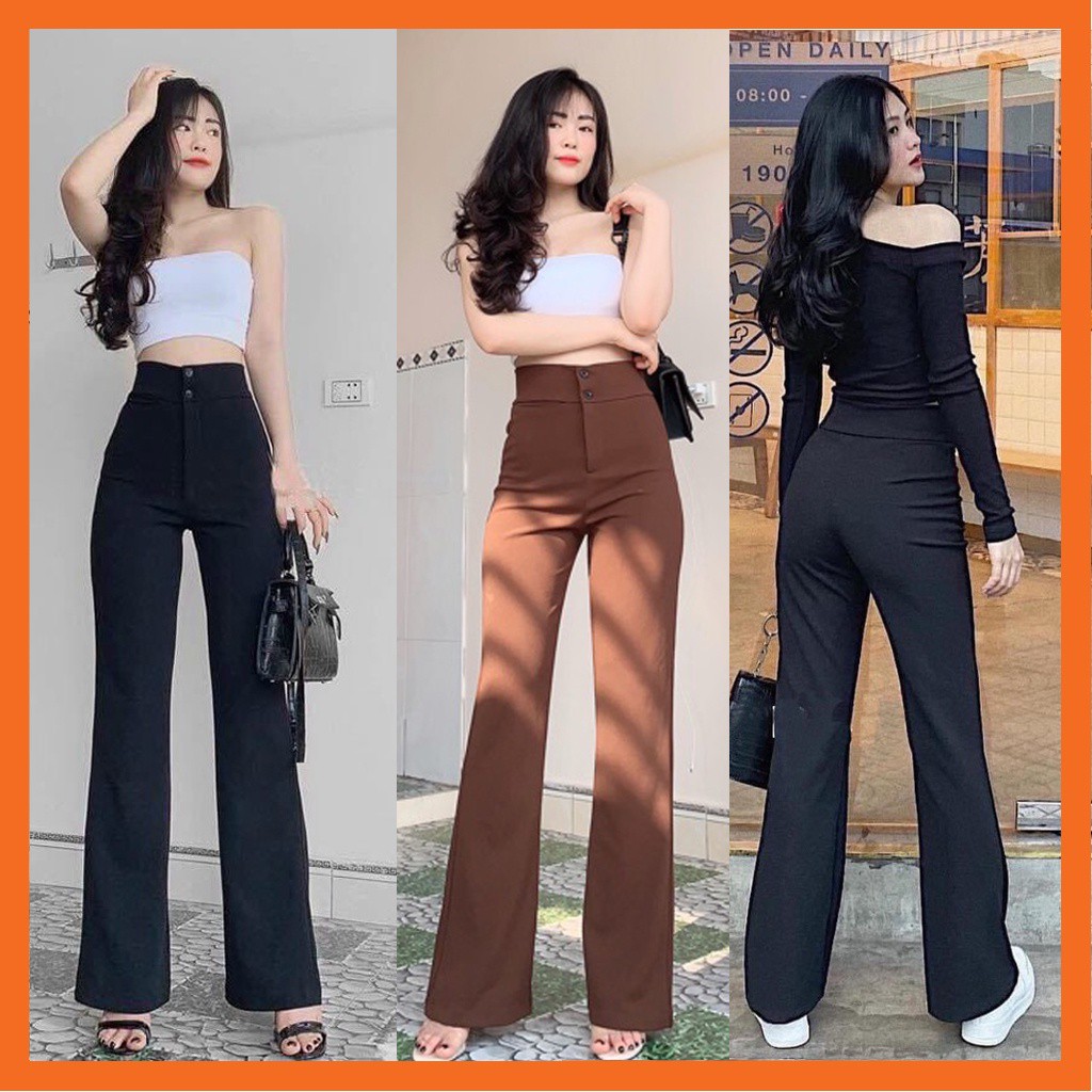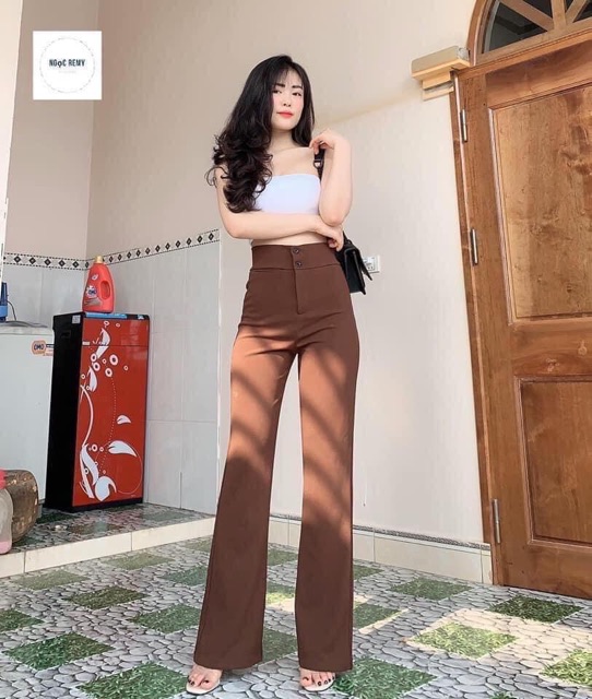 High Back Flare Pants Two Buttons Modern Style