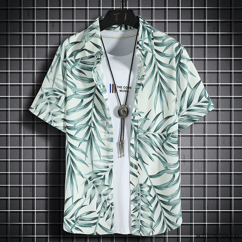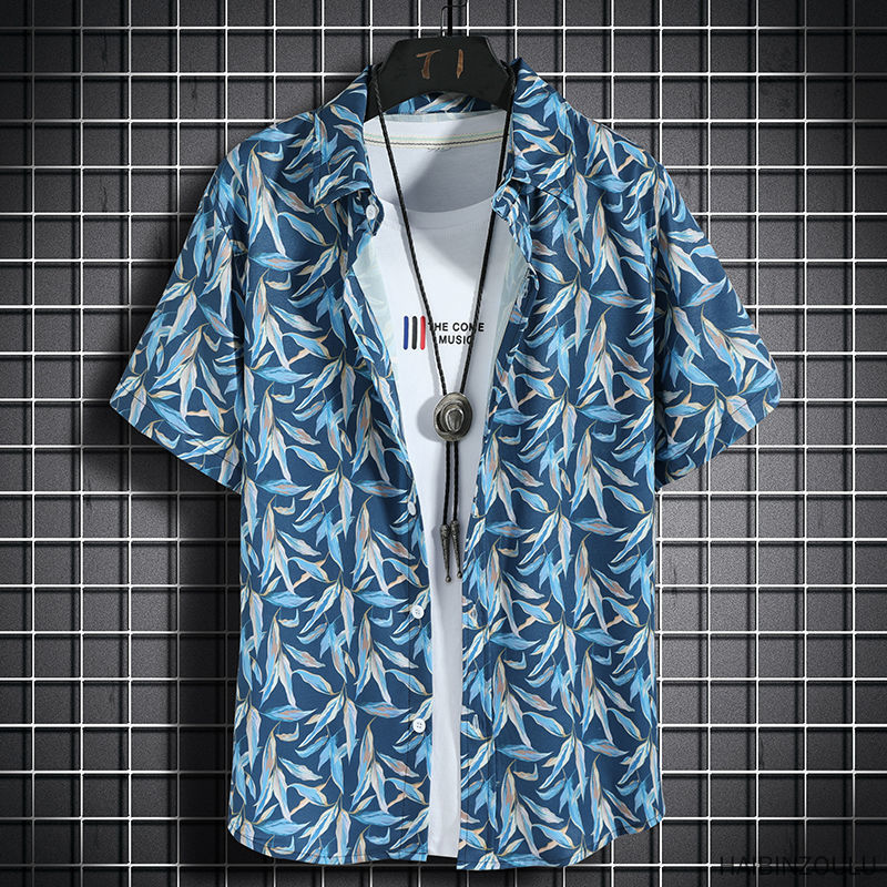 7-color boys' short sleeve shirt Hawaiian style beach shirt men's loose quick dry Casual Short Sleeve printed shirt beach quick dry T-shirt fashion trend loose oversized men's and women's clothing Sto