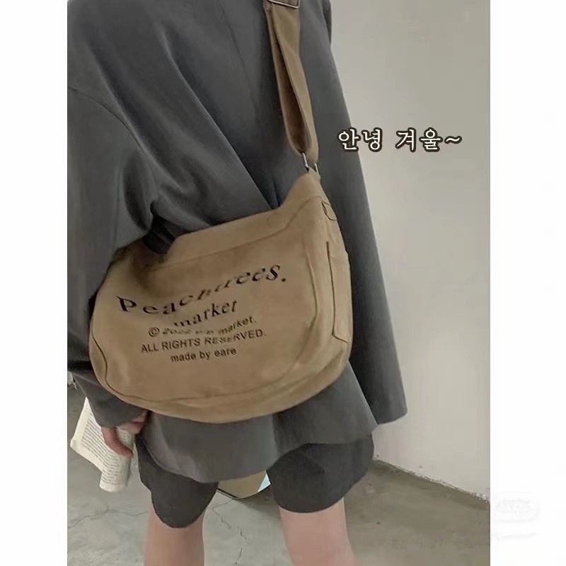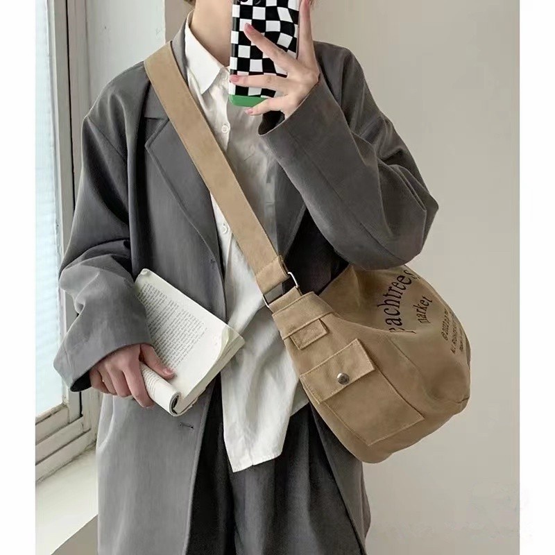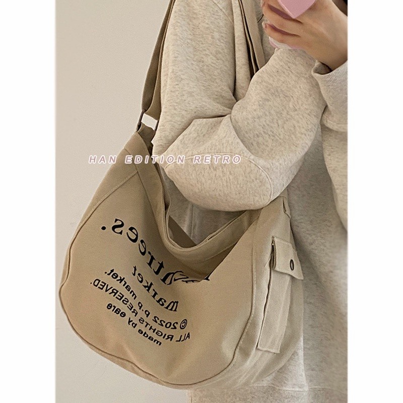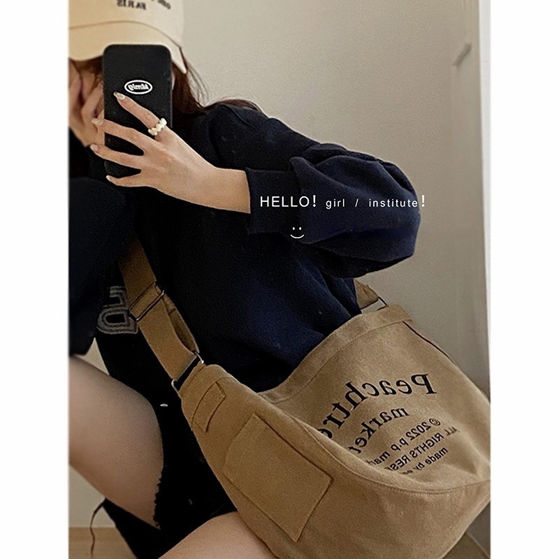 2023 new retro canvas bag large capacity messenger bag female student shoulder bag Japanese Joker tote bag