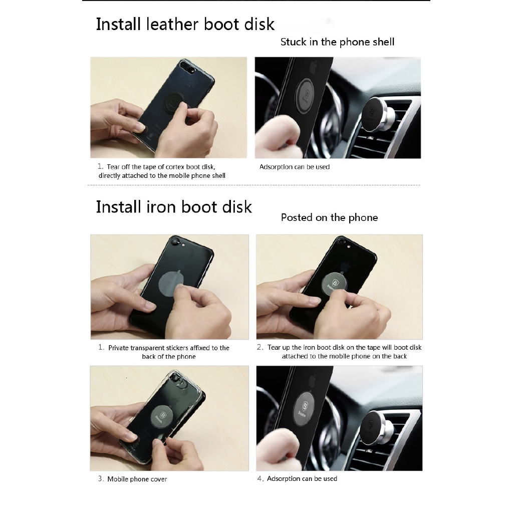 Baseus Magnetic Disc For Car Phone Holder 2 Pcs Metal And Leather Iron Plates Plate Magnet Mount Mobile Phone Use Bracket Stand Car Phone Holder