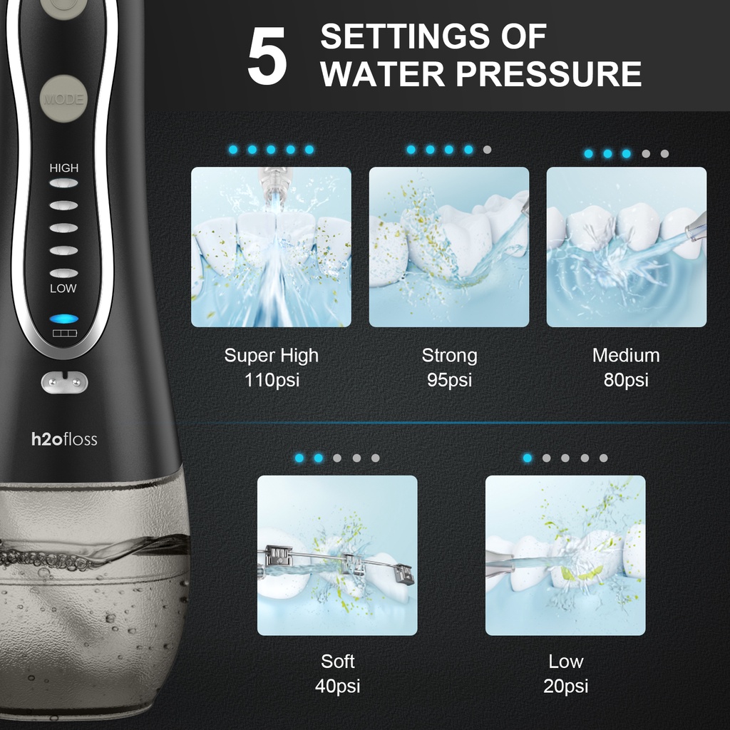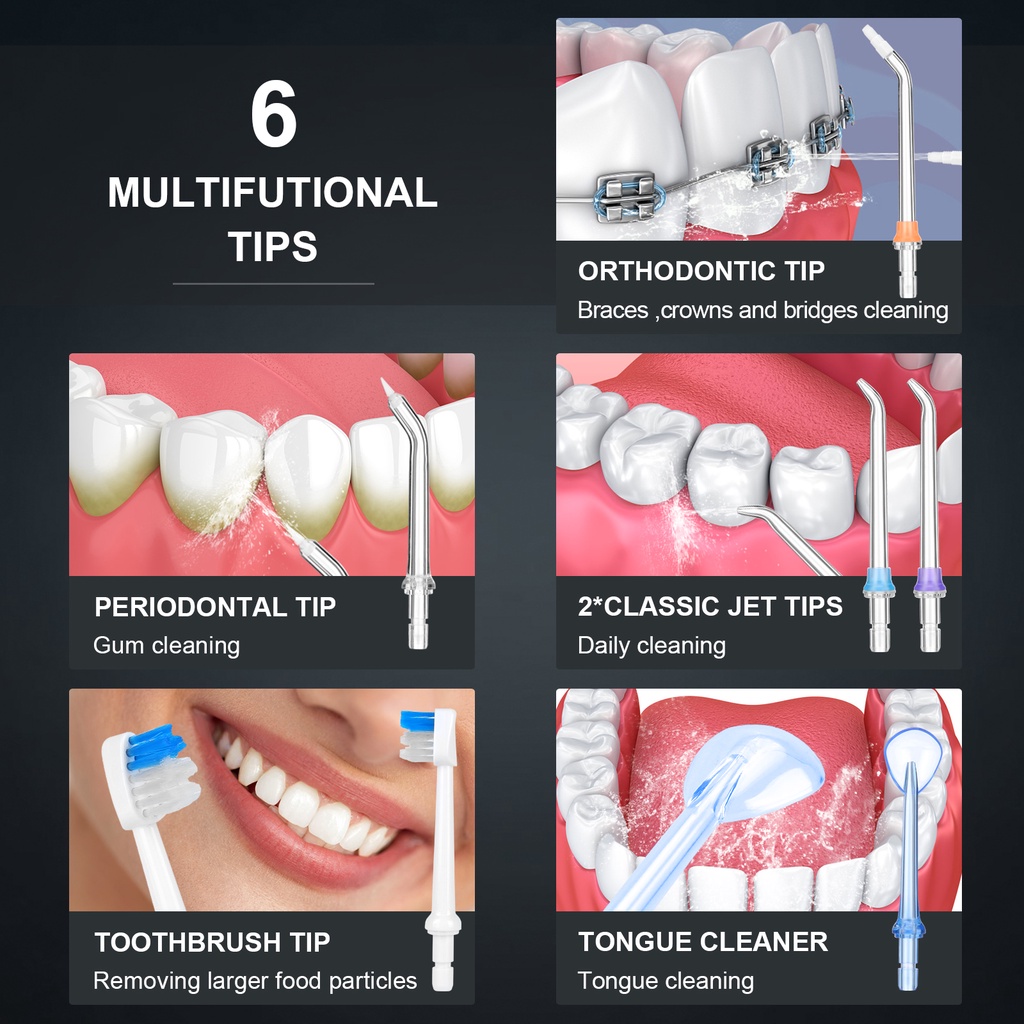 Water Flosser for Teeth Cordless IPX7 Waterproof Dental Oral Irrigator Tooth Cleaner with 5 Modes, 300ML Water Tank and 6 Jets Toothpick for Tooth Brace Gum Bridges Tartar Cleaning