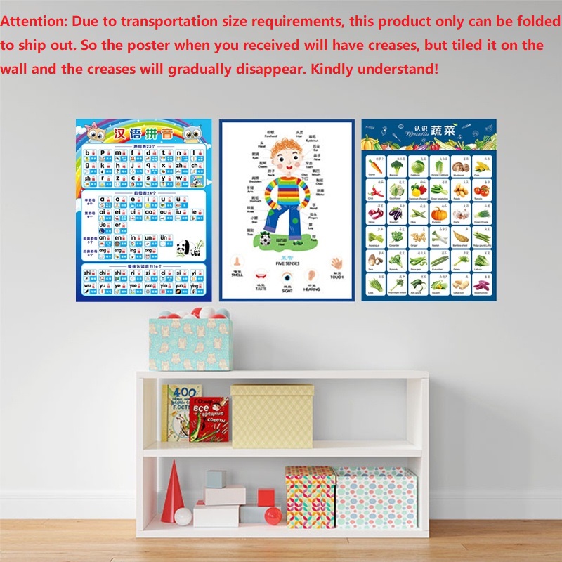 NEW Baby Literacy Wall Chart Young Children Early Education Wall Stickers Cognitive Wall Chart Baby Enlightenment Silent Card