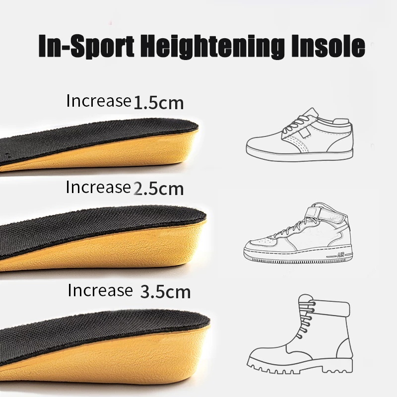 1Pair Breathable Invisible High Elasticity Height Increase Insoles/ Soft Shock Absorption Sport Sole Pad Unisex