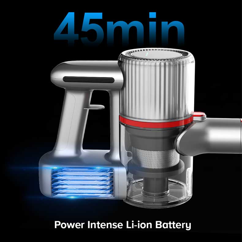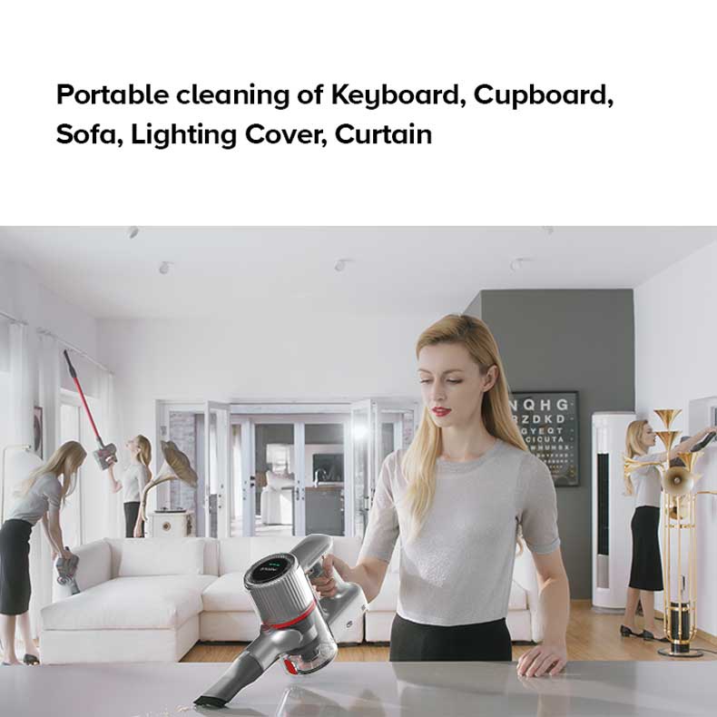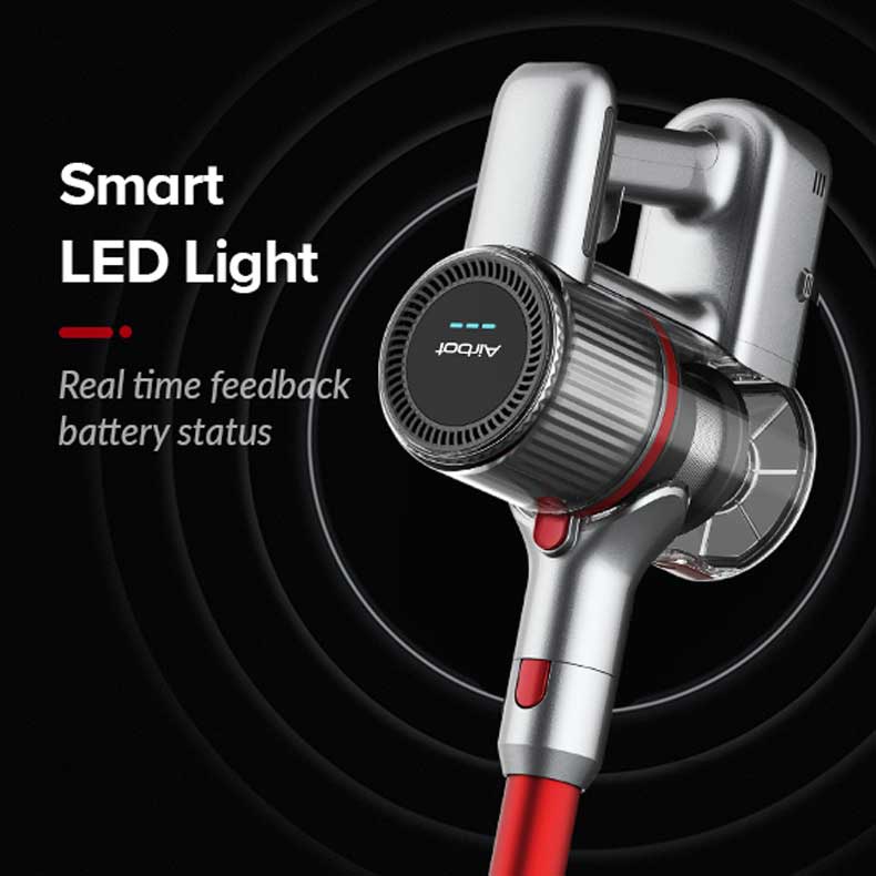 New slim handle design, reduced weight, more comfortable grab for portable daily cleaning. 19000Pa high torque motor delivers consistent vacuum power for quick home cleaning. Top smart LED indicator shows battery level, know cleaning status in real-time and plan charging schedule.