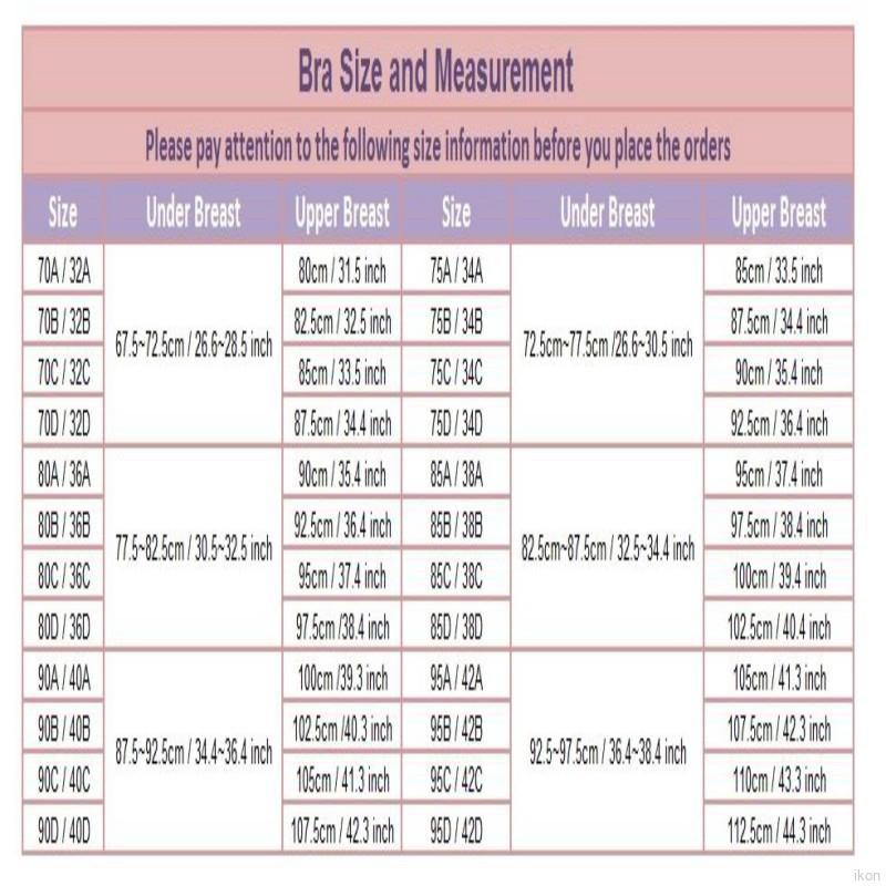 Size: 70,75,80,85,90 (Band: 32.34.36,38,40 Cup: B)