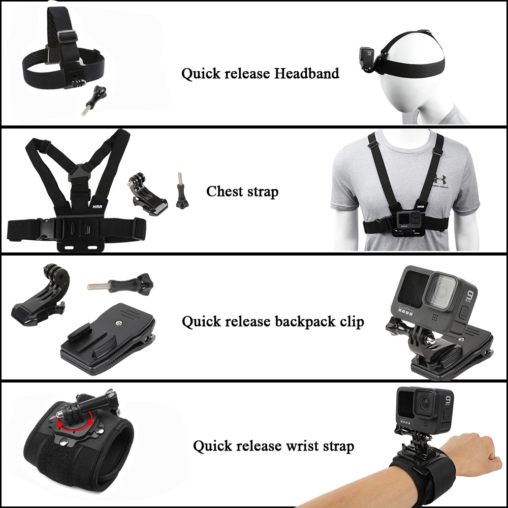 Accessories Kit for Insta360 One X2/X/One R/GoPro Hero,Quick Release Head Mount+Backpack Clip+Chest Strap+Wristband Body Holder