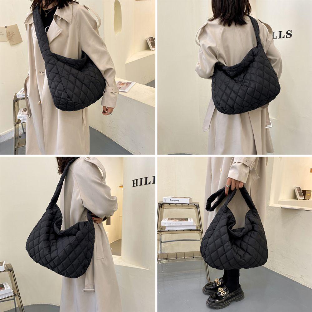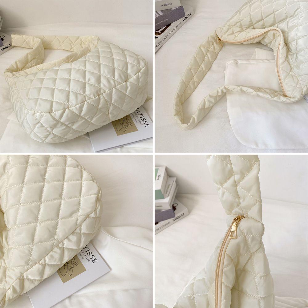Plaid Shoulder Bags#Puffy Handbag#Underarm Bags#Quilted Tote Bag#Cotton Padded#Large Capacity#Lightweight#Winter#Warm#Women