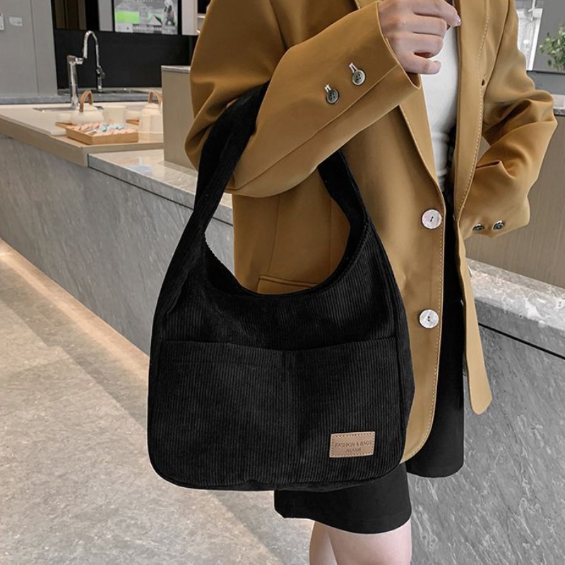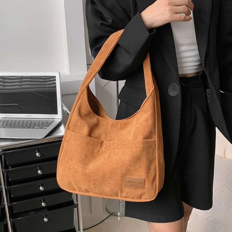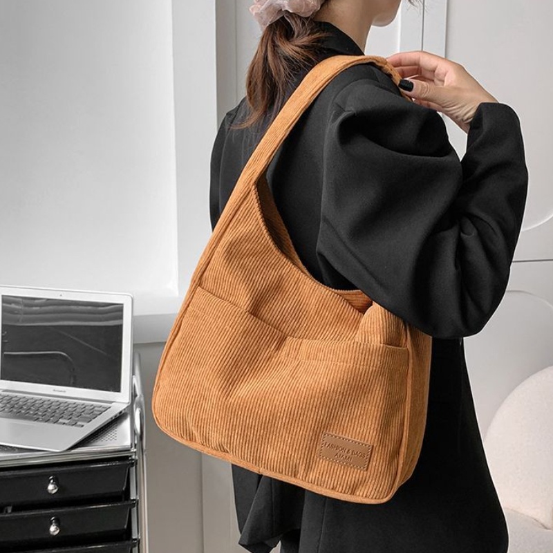 Japanese Retro Large-capacity Corduroy Bag Female New Trend Fashion All-match Shoulder Bag Student Class Tote Bag