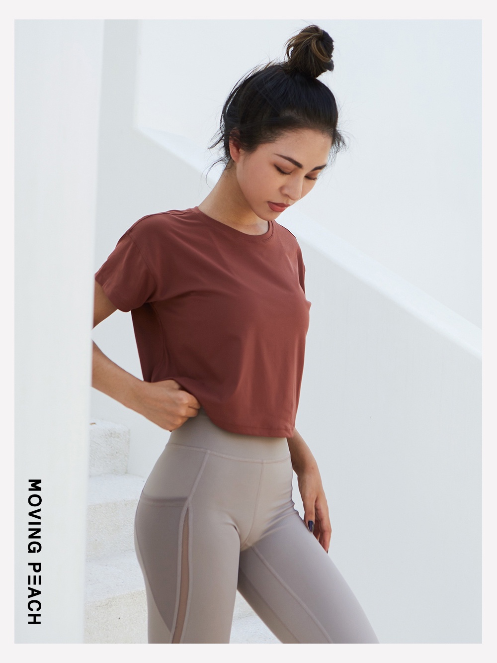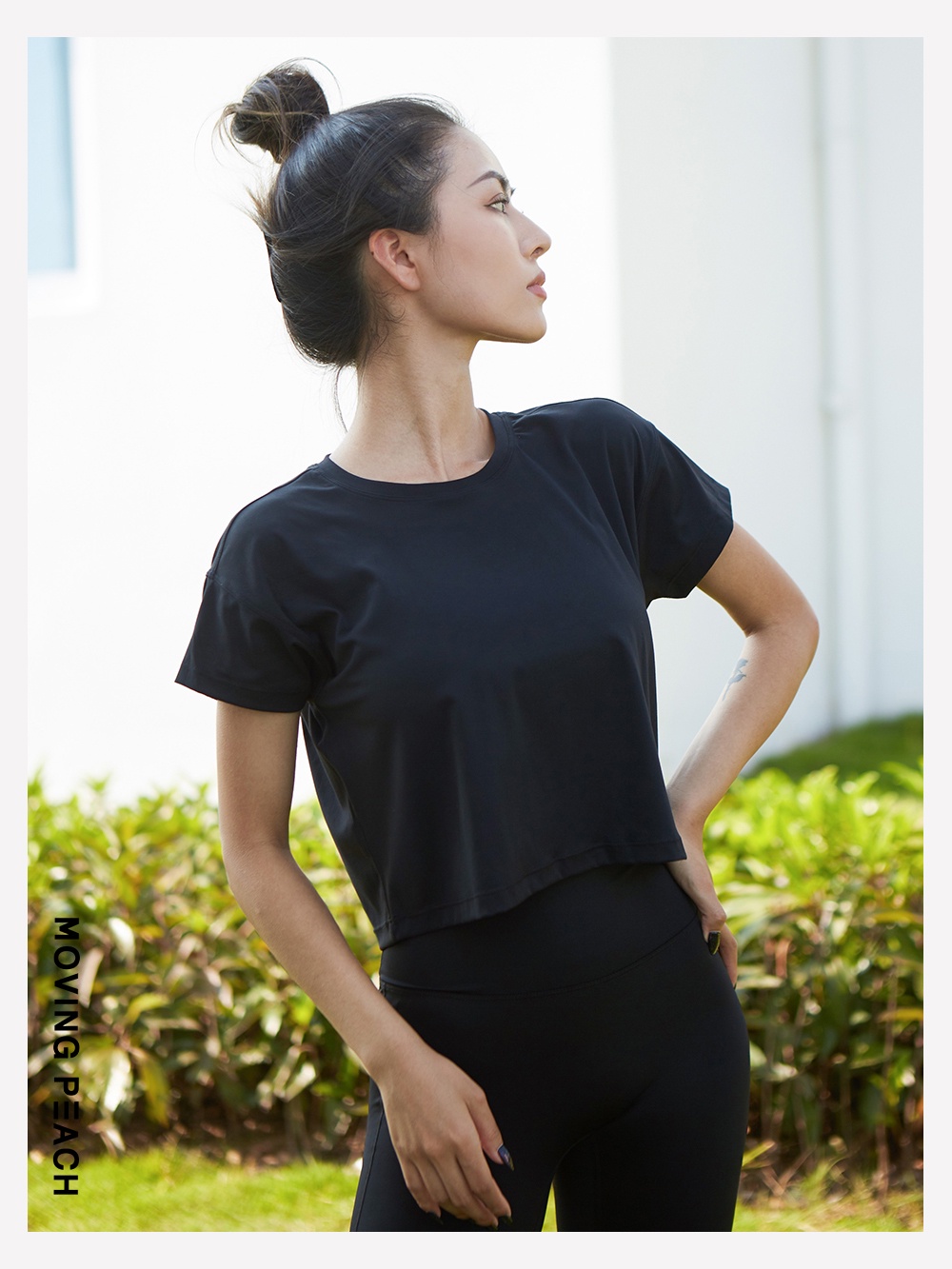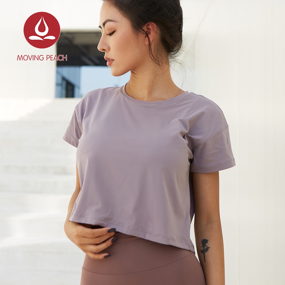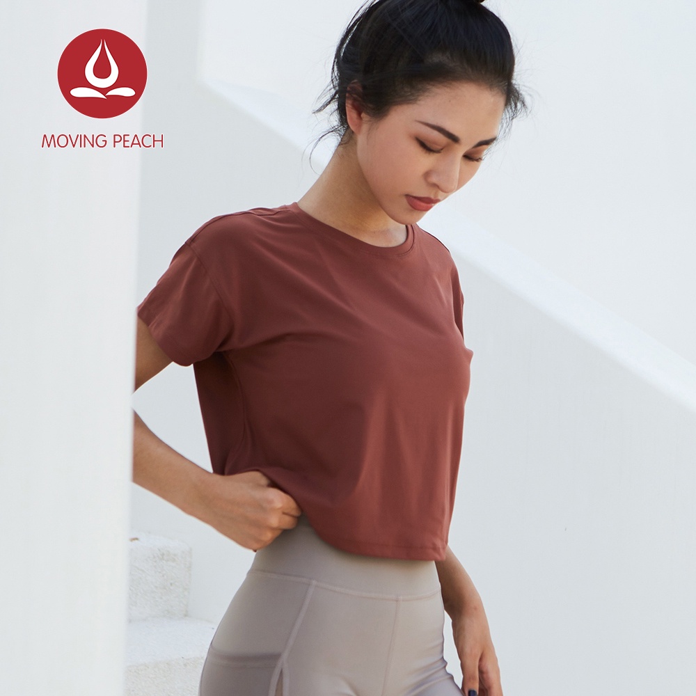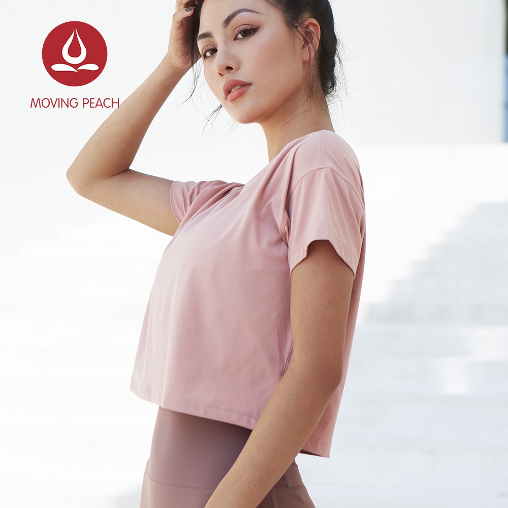 MOVING PEACH Women Fitness T-shirts Sexy Yoga Crop top Loose Quick dry Training Short sleeves BTQ