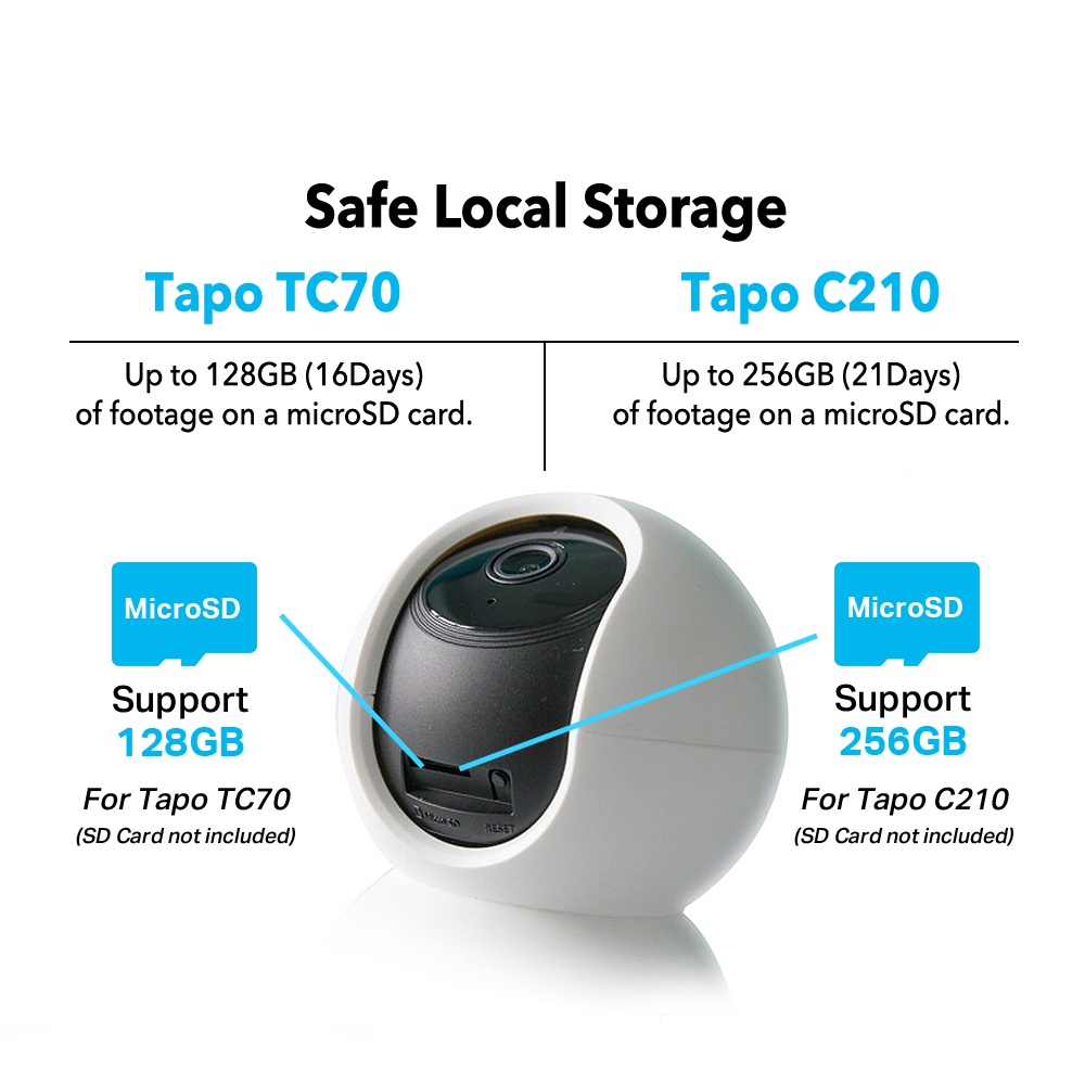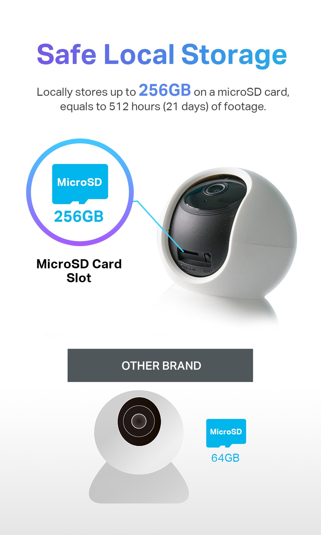 ?Safe Storage: Locally stores up to 256 GB on a microSD card, equal to 512 hours (21 days) of footage. (Based on laboratory conditions) [*Recommended to use a high endurance microSD card to ensure recording stability*]