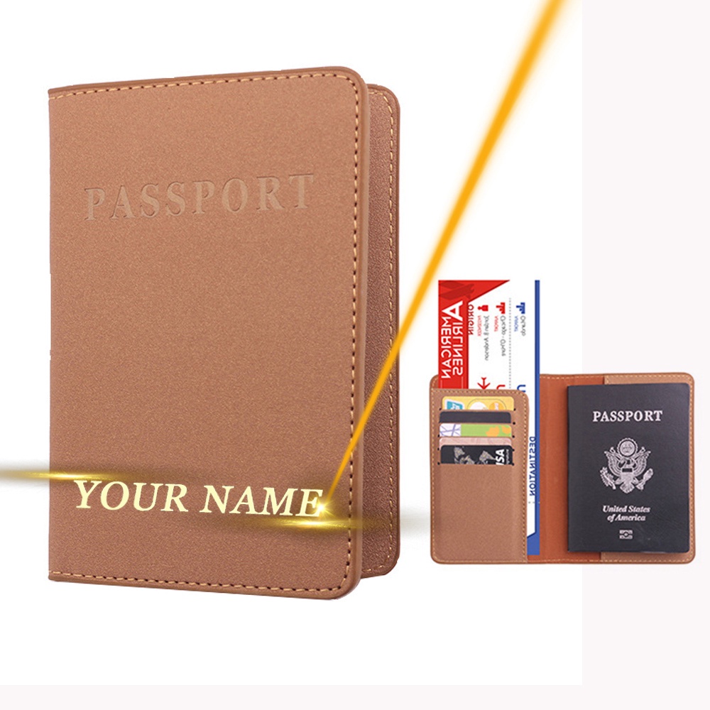 RFID Engraved Name Passport Cover Travel Wallet Passport Holder Men's Bank Card Holder Case Women Credit ID Document Customized Name
