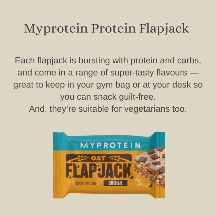 Each flapjack is bursting with protein and carbs, and come in a range of super-tasty flavours — great to keep in your gym bag or at your desk so you can snack guilt-free.